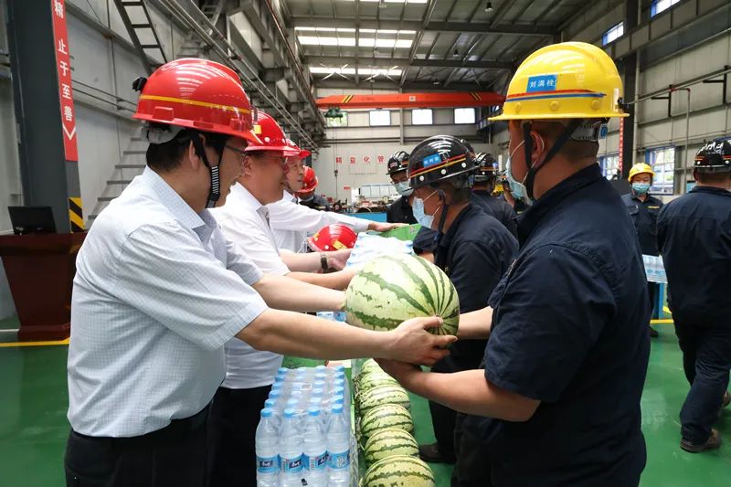 张嗣华一行首先到亭南煤业公司综机维修中心车间,看望慰问奋战在一线的干部职工,对高温下的辛勤工作的他们表示感谢。同时,他们送上西瓜、矿泉水等防暑降温用品“大礼包”,叮嘱做好防暑降温工作,呵护员工身心健康,确保安全平稳度夏。