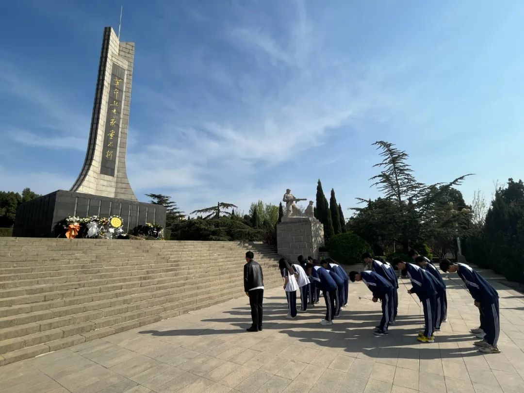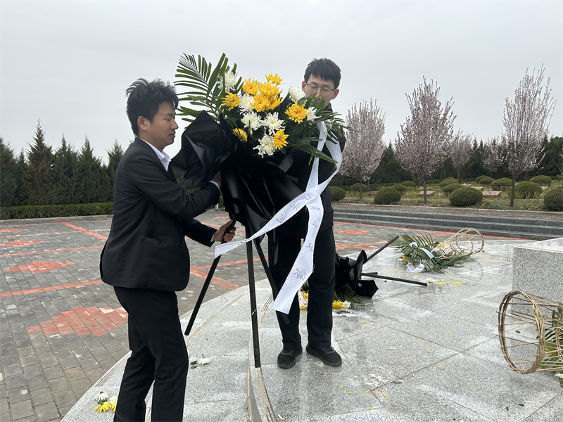 技术学院组织学生团员代表到淄川革命烈士陵园开展清明节主题纪念活动,缅怀革命先烈,传承红色基因。学院师生手持白色菊花,神情凝重肃立向革命烈士纪念碑鞠躬,并依次向革命烈士纪念碑、散葬烈士集中墓园敬献鲜花,表达对革命先烈的敬仰之情。(王嘉宝)