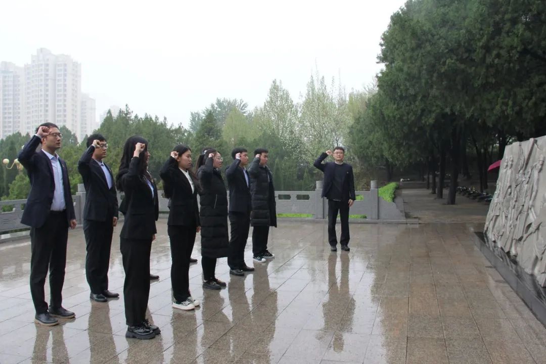 爱科公司团支部组织党员、团员青年,到淄川区北山烈士陵园开展“清明祭英烈 红色永相传”主题团日活动。青年们怀着庄重的心情在雨中祭扫革命烈士墓,全体人员庄严肃立,在革命英雄纪念碑前行礼鞠躬,重温入团誓词,并向革命烈士敬献花束。(牟朝旭)