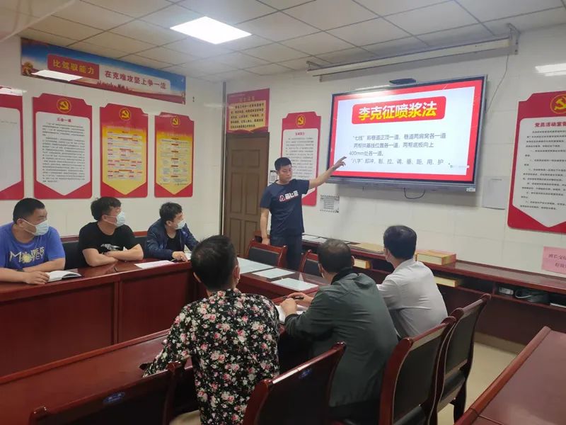 “‘七线’即巷道正顶、两肩各一道,两帮拱基线、底板及向上40公分各一道;‘八字’即冲、剔、拉、调、垂、距、用、护……”5月25日早班班后会上,该工区班长李克征将自己创新改善后的“七线八字”喷浆工艺进行讲解。