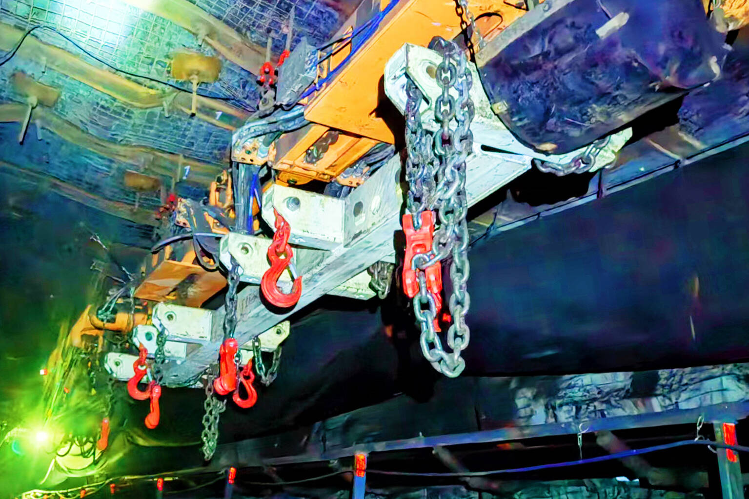作业过程中,施工人员克服巷道空间限制,通过精细化工程组织与队伍间的紧密配合,有序完成旧轨梁拆除、新轨梁安装及系统调试等关键工序。整个施工流程衔接顺畅,安全措施落实到位,实现了安全与效率的统一。