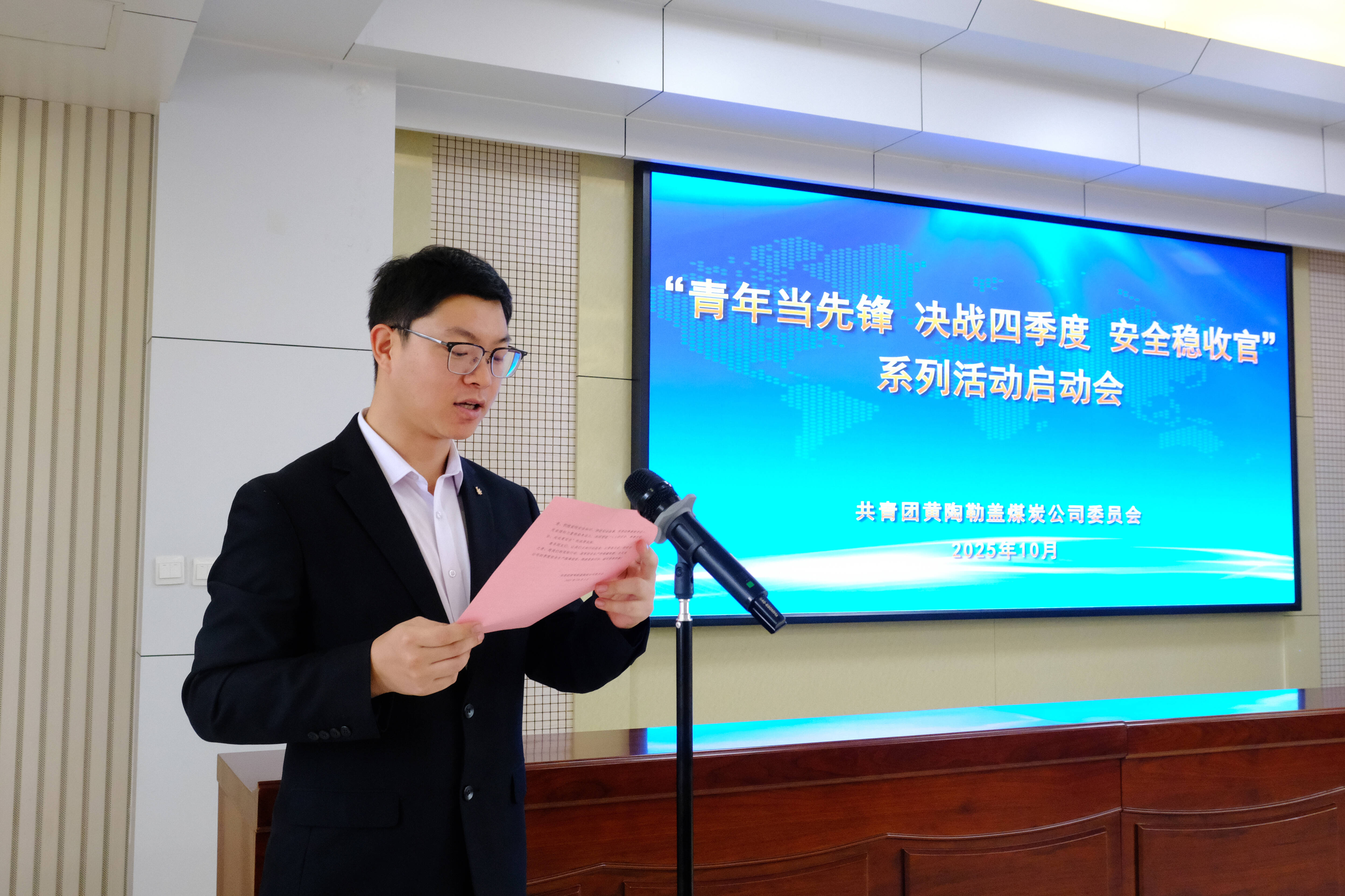 为充分激发广大青年在安全生产工作中的生力军和突击队作用,近日,黄陶勒盖煤炭公司团委隆重举行“青年当先锋,决胜四季度,安全稳收官”系列活动启动仪式,全面掀起青年保安全、促生产热潮。