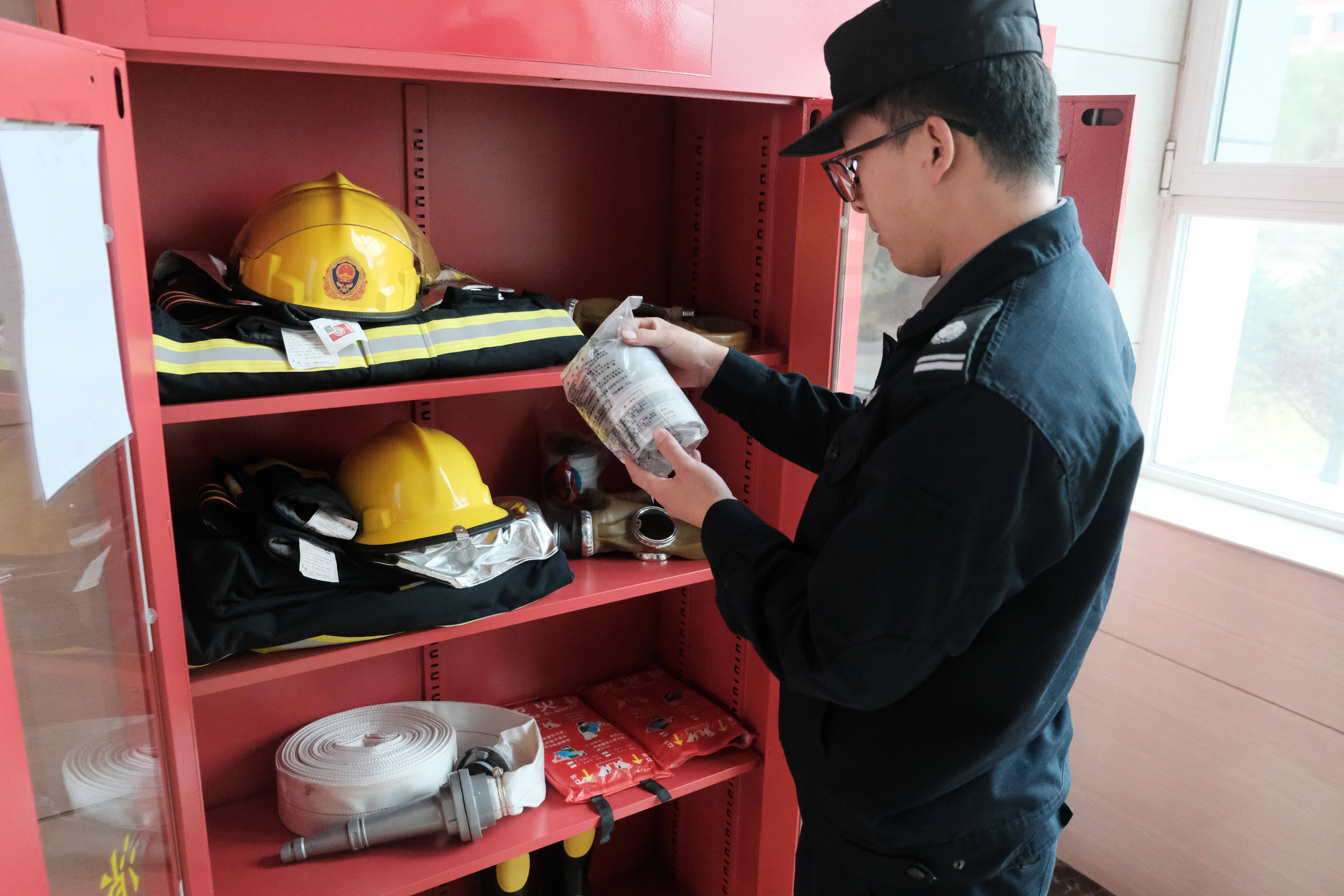 图为黄陶勒盖煤炭公司人武部检查消防安全设施