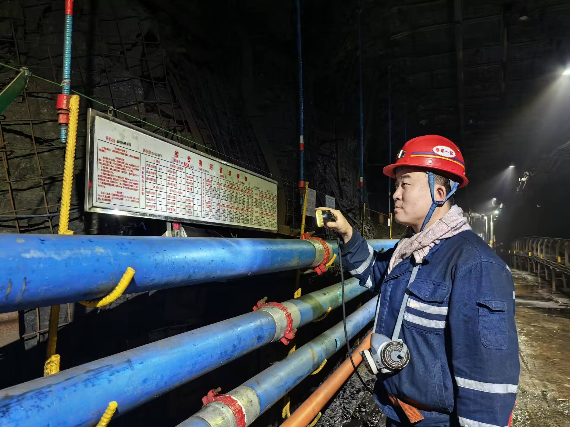 (黄陶勒盖煤炭公司巴彦高勒煤矿综采一区党员高骏飞在工作面上巡检)