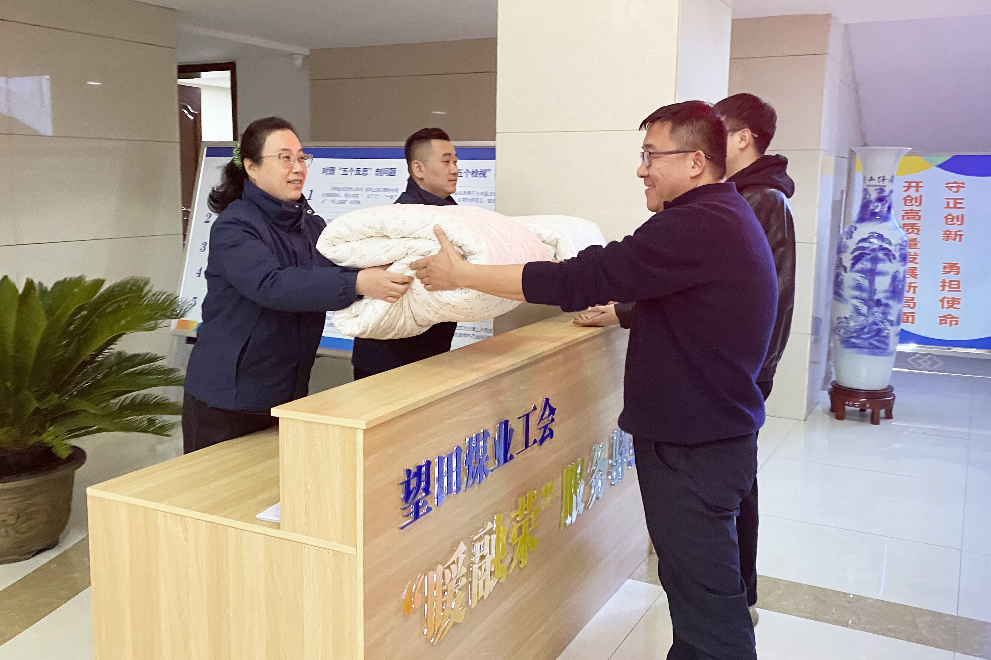 “这棉被又厚实又暖和,晚上睡觉真热乎,白天干活也更有劲儿了!”11月的晋北高原寒意袭人,该公司综采工区职工王共海捧着工会送来的新被子,脸上洋溢着幸福的笑容。