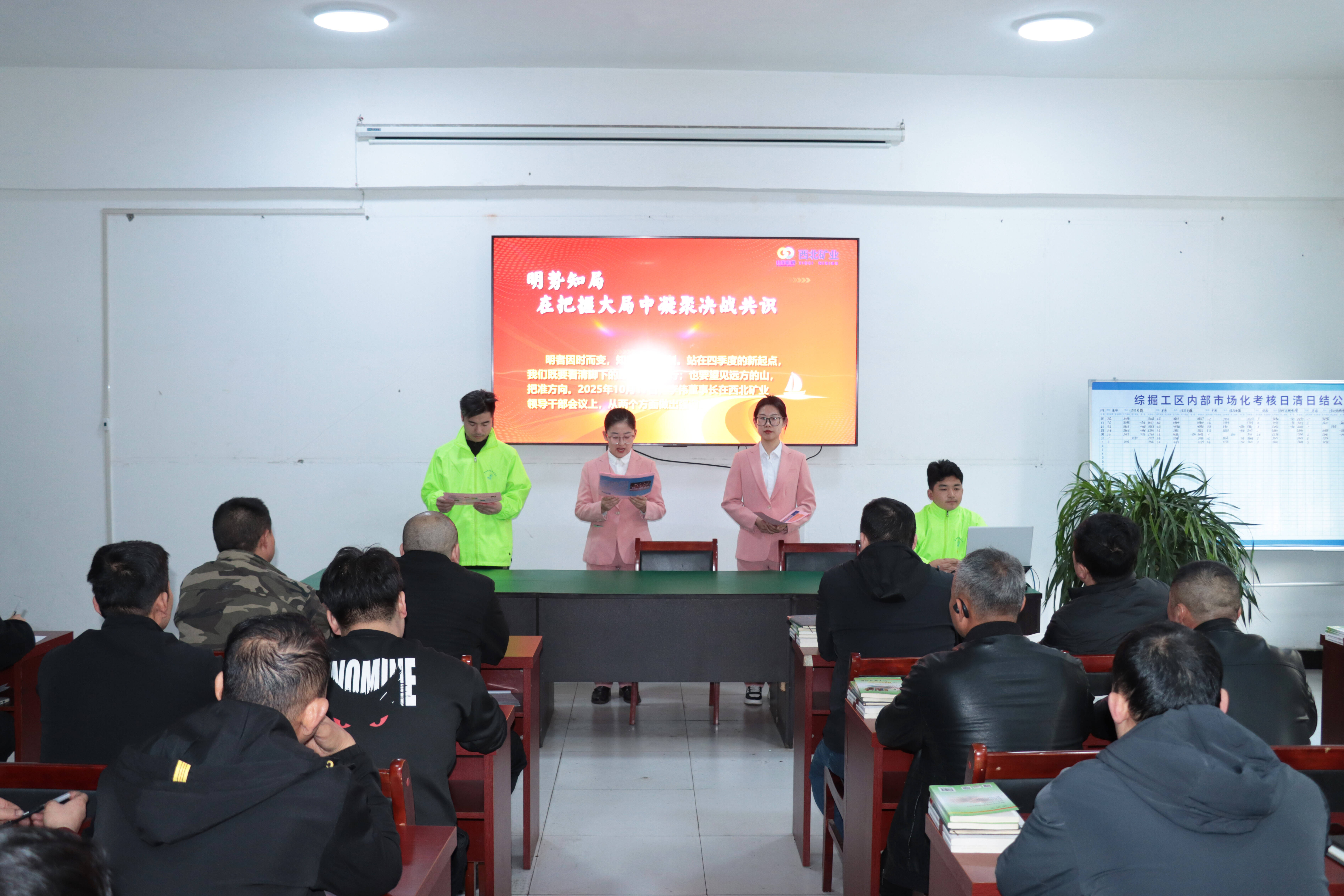 决战攻坚,思想先行。为凝聚全员决战共识,望田煤业通过厂区宣传栏、内部公众号、短视频等平台,集中宣传一线职工攻坚事迹与先进典型,多载体、全方位搭建宣传矩阵。同时,他们还同步开展“明势知局,在把握大局中凝聚决战共识”主题宣讲活动,引导广大职工“站在四季度的新起点,既看清脚下的路,务实笃行,也望见远方的山”,明晰攻坚意义、坚定必胜信念,让攻坚氛围浸润人心。