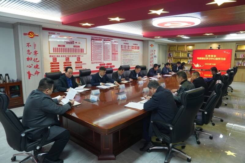 图为五举煤业党委理论学习中心组集中研讨当前形势任务内容