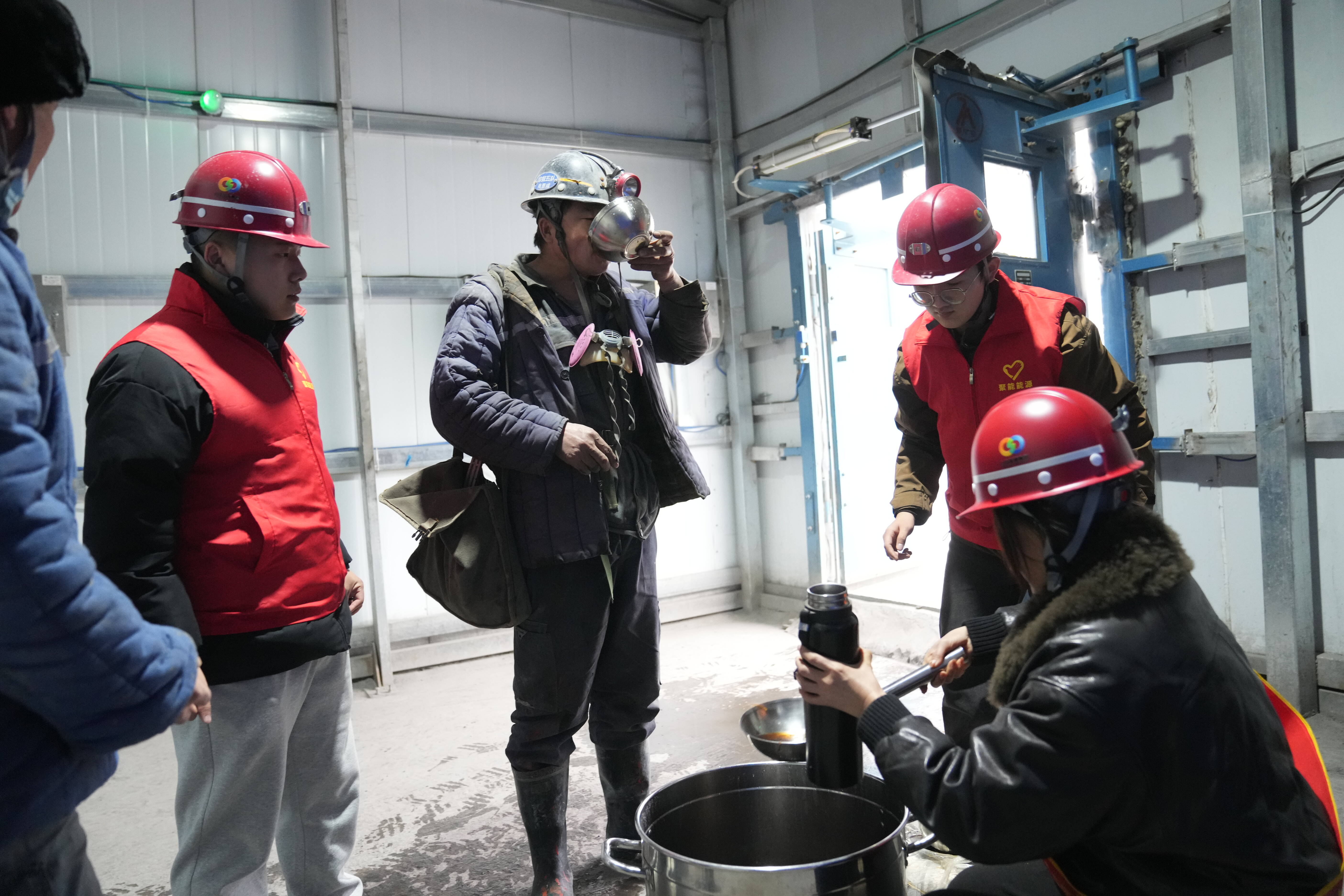 图为油房壕煤矿志愿者为下井职工送姜汤现场