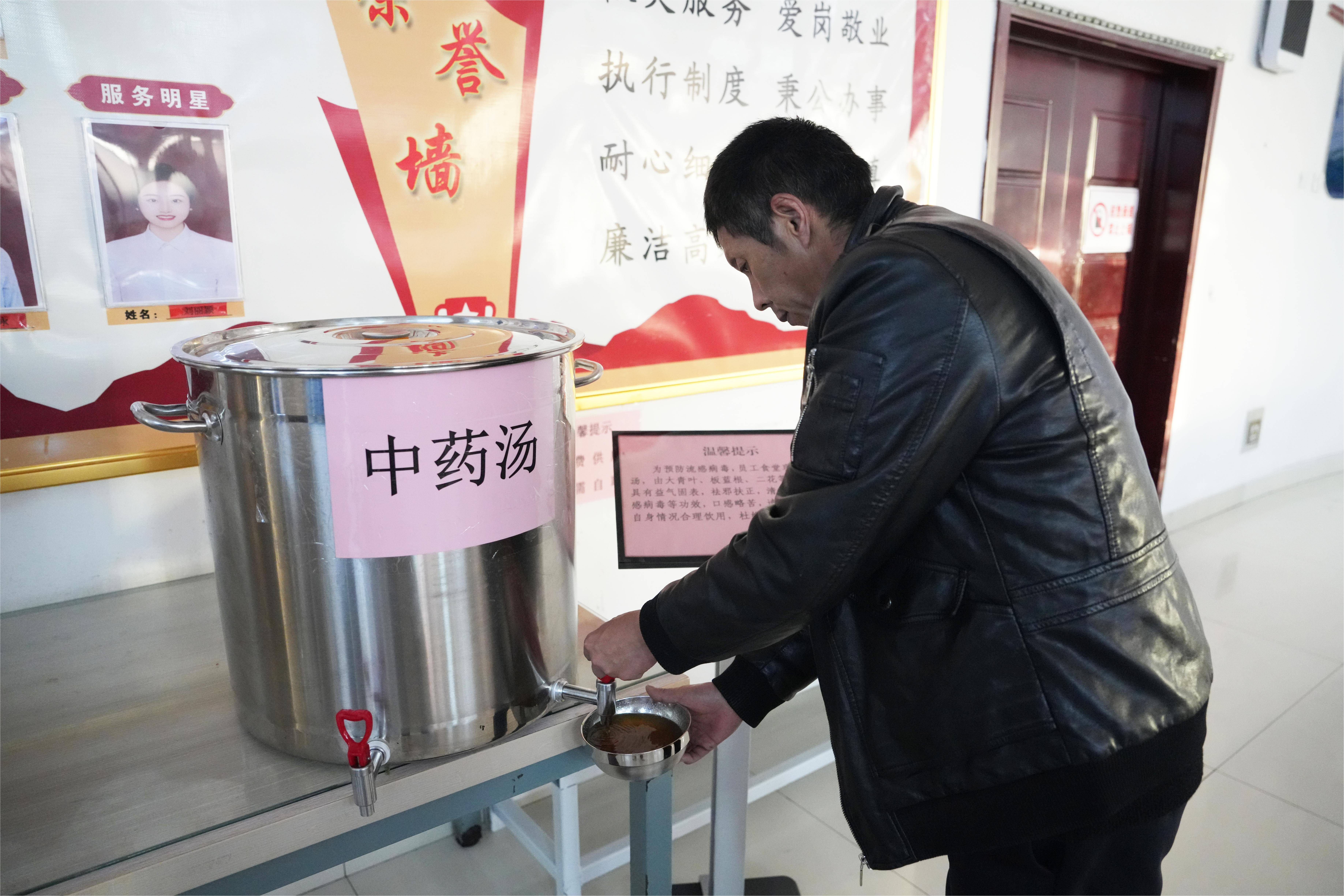 图为黄陶勒盖煤炭公司职工取用中药汤剂