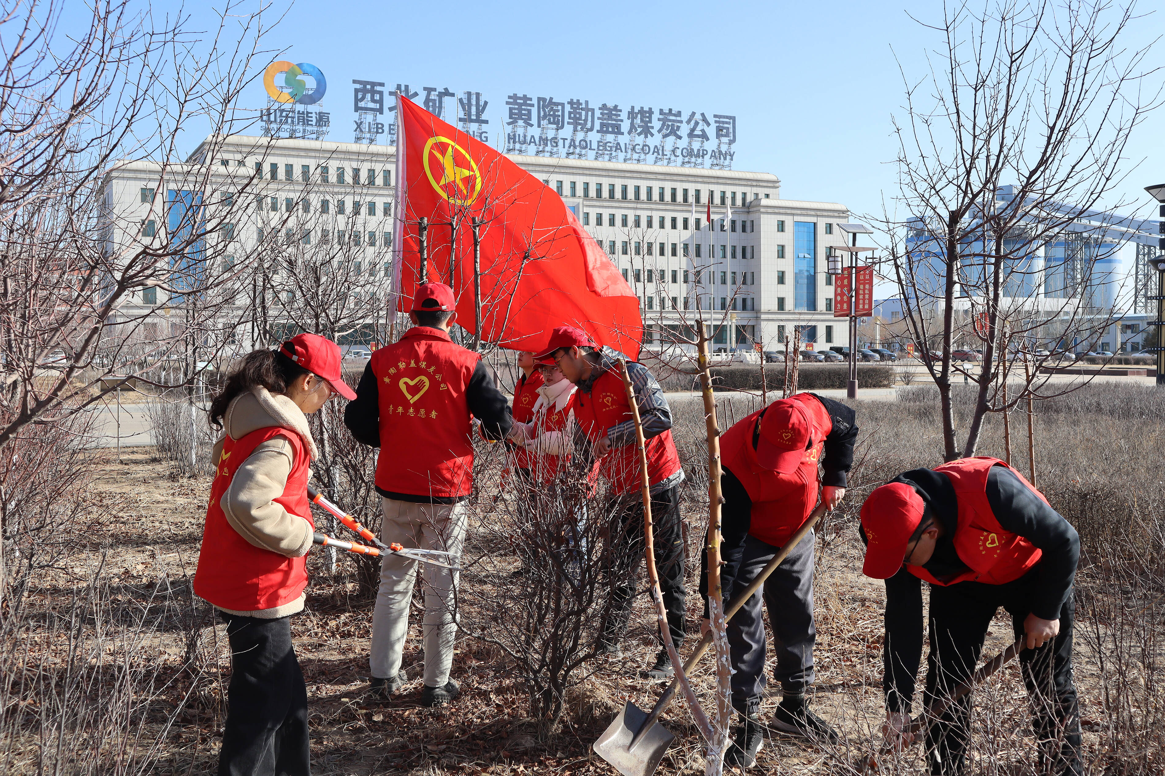 图为黄陶勒盖煤炭公司志愿服务队清理地面卫生