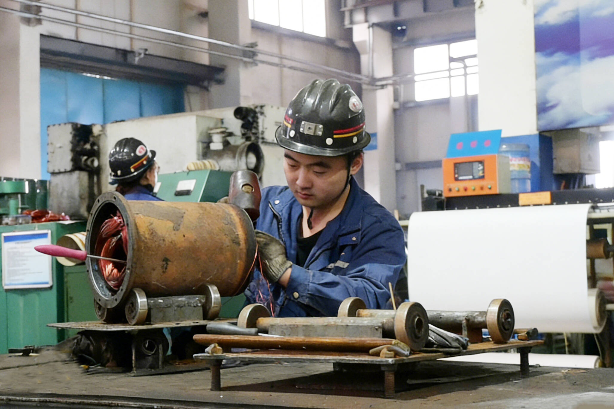 图为黄陶勒盖煤炭公司机修厂职工正在维修废旧水泵