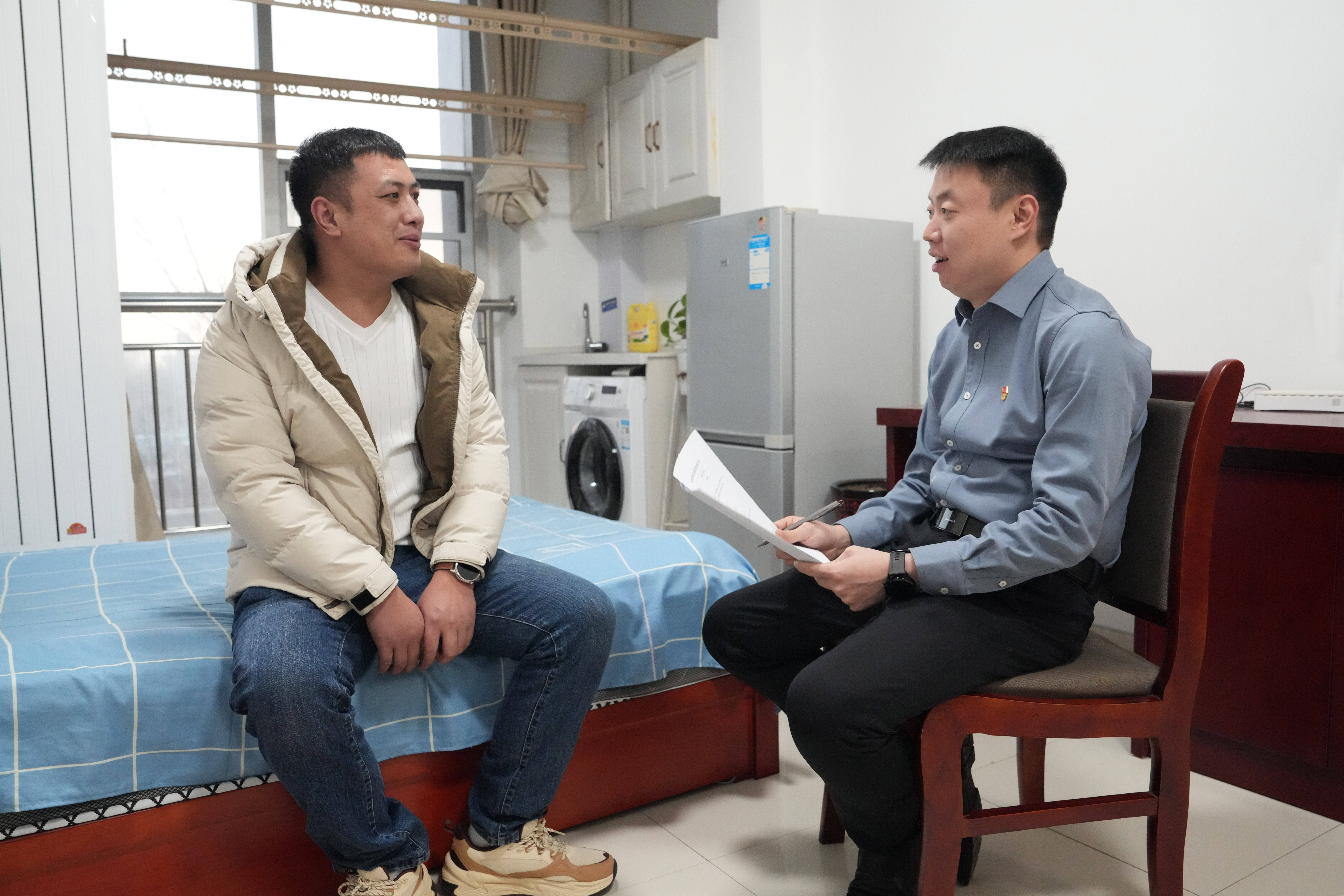 图为黄陶勒盖煤炭公司支部书记进宿舍收集职工诉求