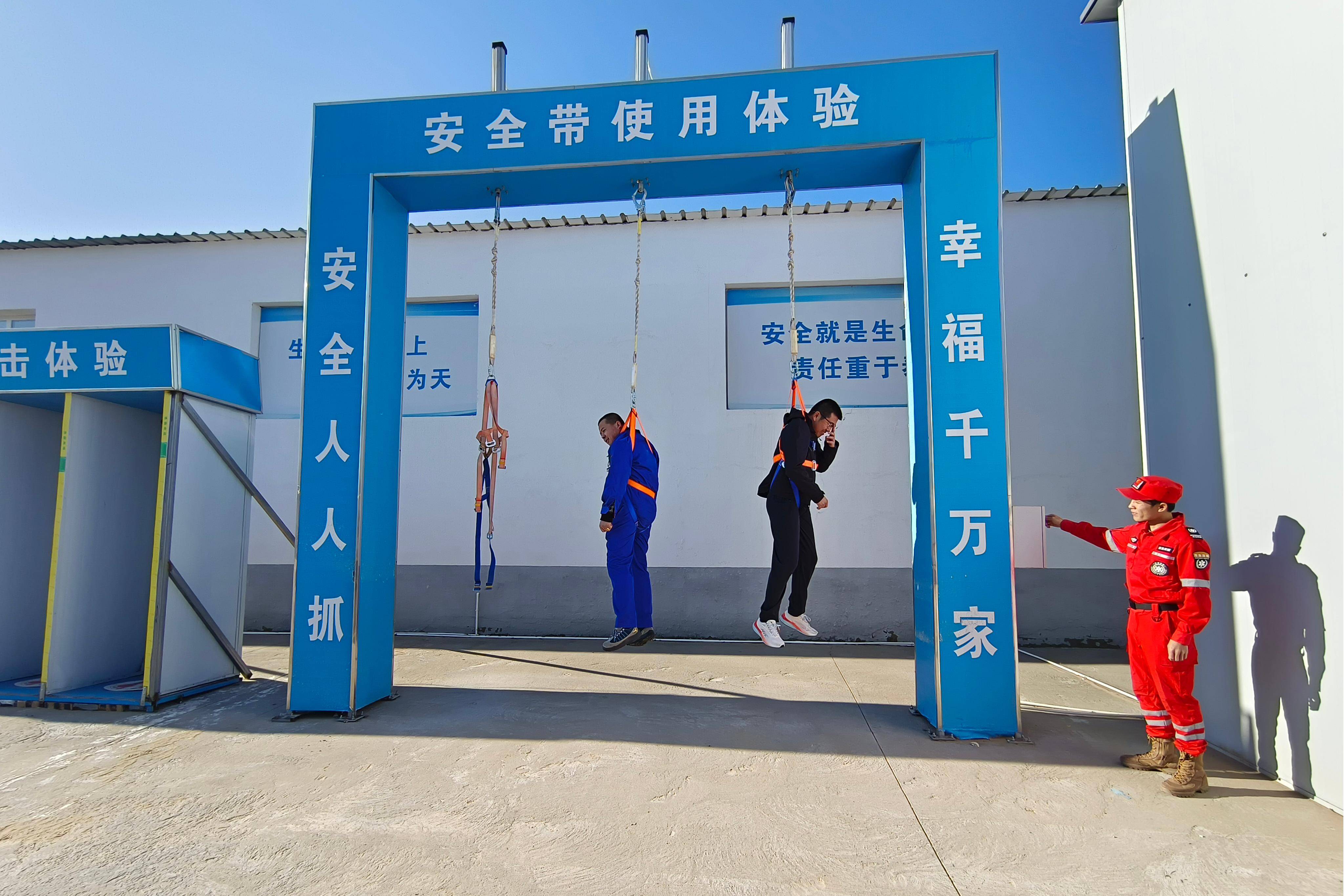 图为黄陶勒盖煤炭公司世林化工分公司职工体验使用安全带