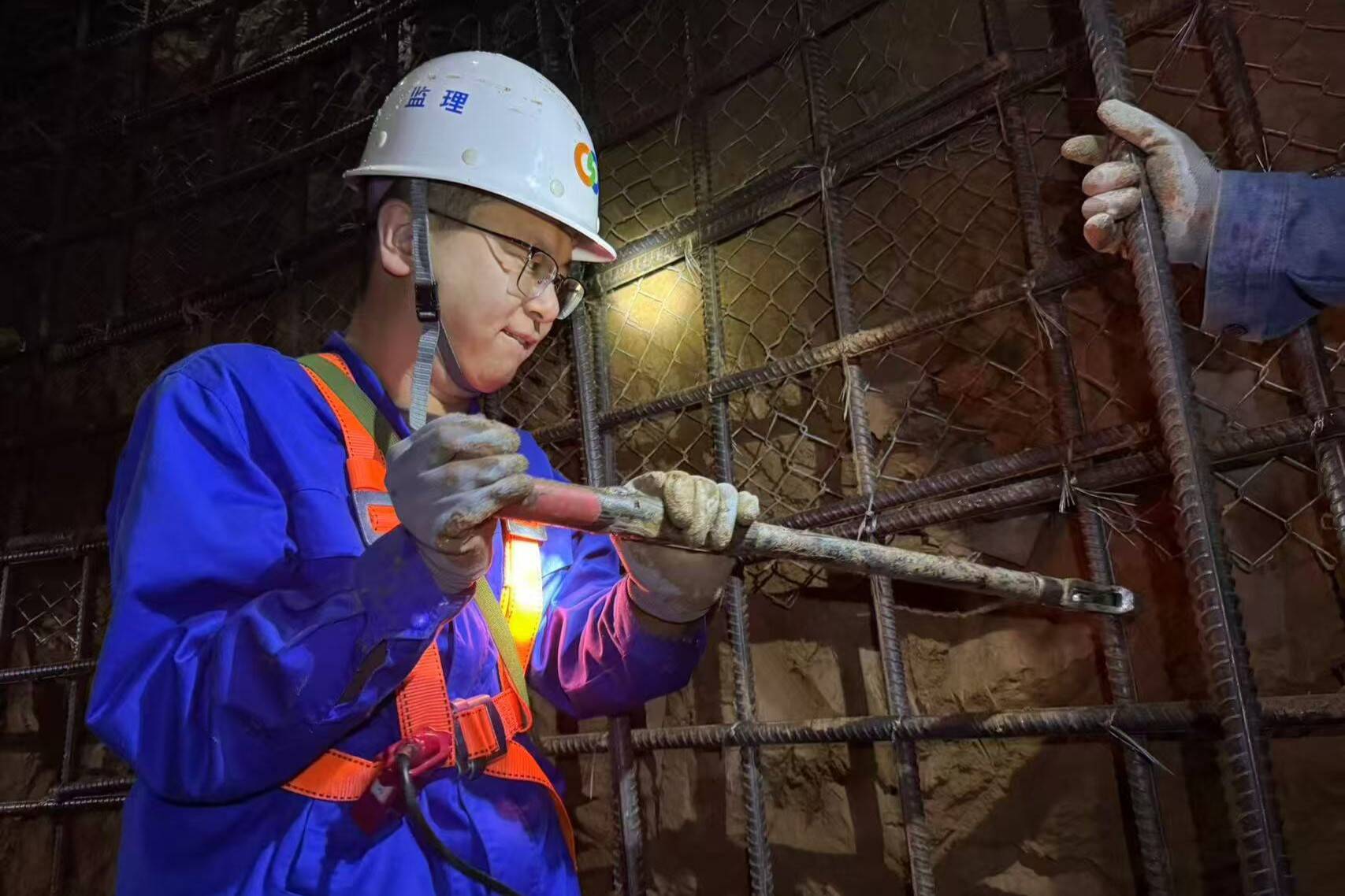 12月14日晚7点半,杨家坪主井井筒228-232米段钢筋绑扎完成,施工方照例申请验收。随即,该公司生产技术部业务负责人王海均便带领相关部门以及监理方、施工方代表共同下井验收。在验收中,王海均将目光锁定在井筒东侧的一根环向钢筋上。他发现其接头搭接位置与喷漆标记有误差,经测量搭接长度为850毫米,与“搭接长度≥875毫米”标准不符。在三方共同见证下,施工人员立即进行现场整改,经复验合格,该段才被允许进入混凝土浇筑工序。