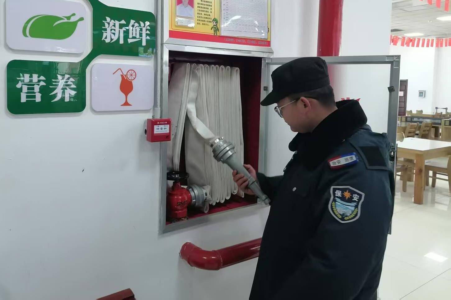 图为黄陶勒盖煤炭公司综合服务中心职工检查消防设施