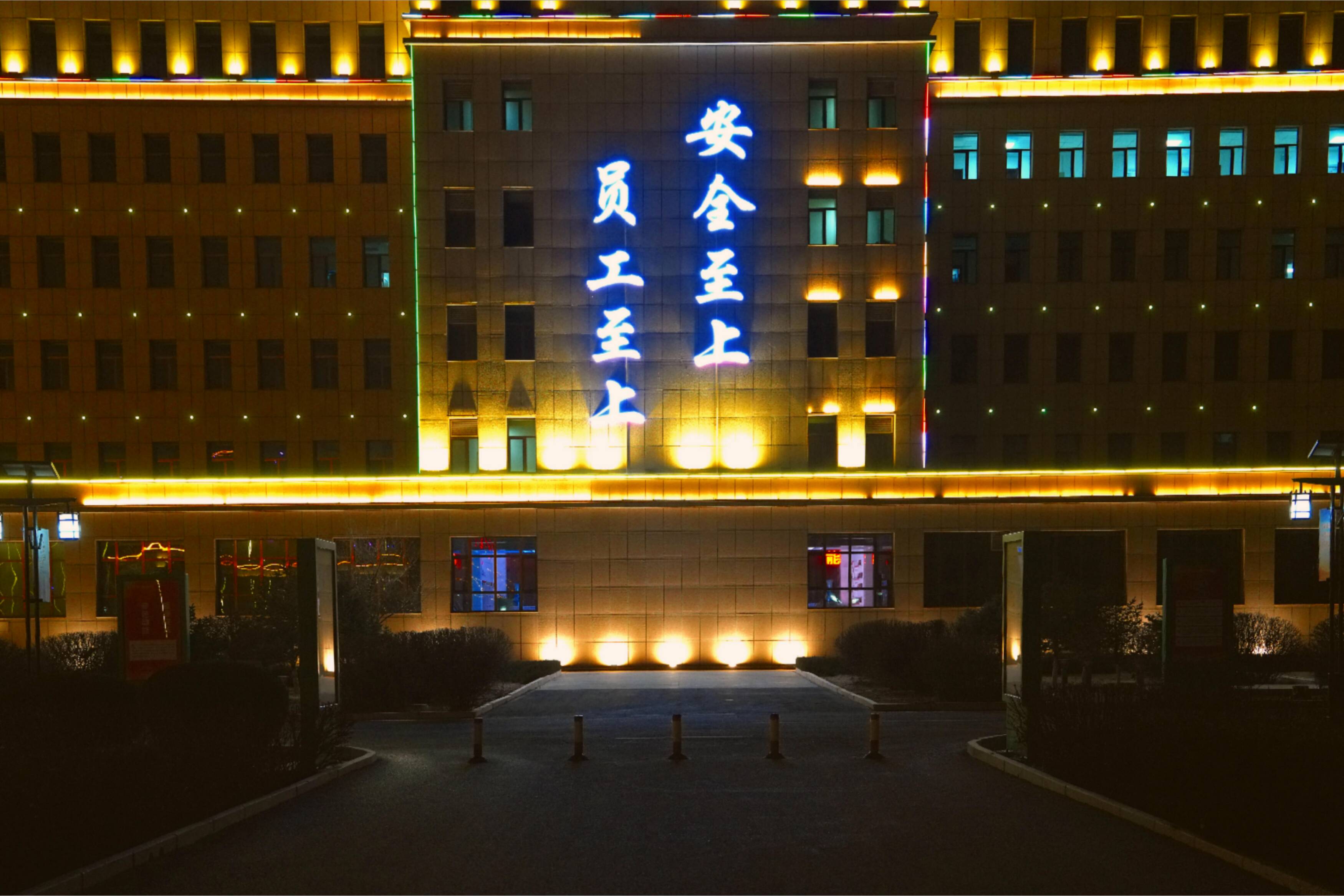 图为黄陶勒盖煤炭公司办公楼夜景图