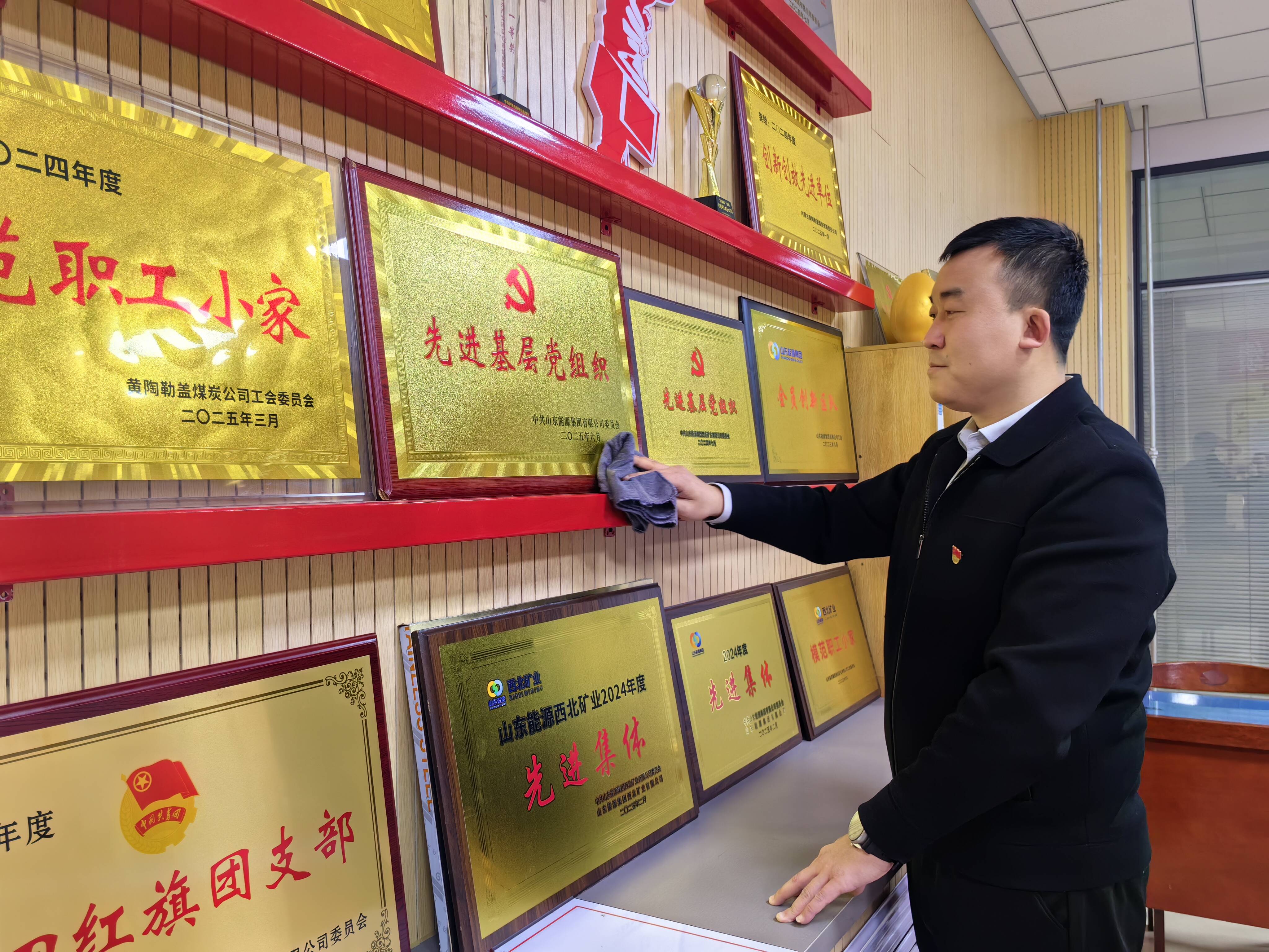 12月23日,黄陶勒盖煤炭公司综采一区党建专员高骏飞正仔细擦拭着那块崭新的“先进基层党组织”奖牌,这是该党支部第二次被山东能源集团授予此项荣誉。作为公司发展的排头兵,他们先后获得山东能源集团“百个过硬党支部”“先进单位”“模范职工小家”、西北矿业“先进基层党组织”等荣誉称号。