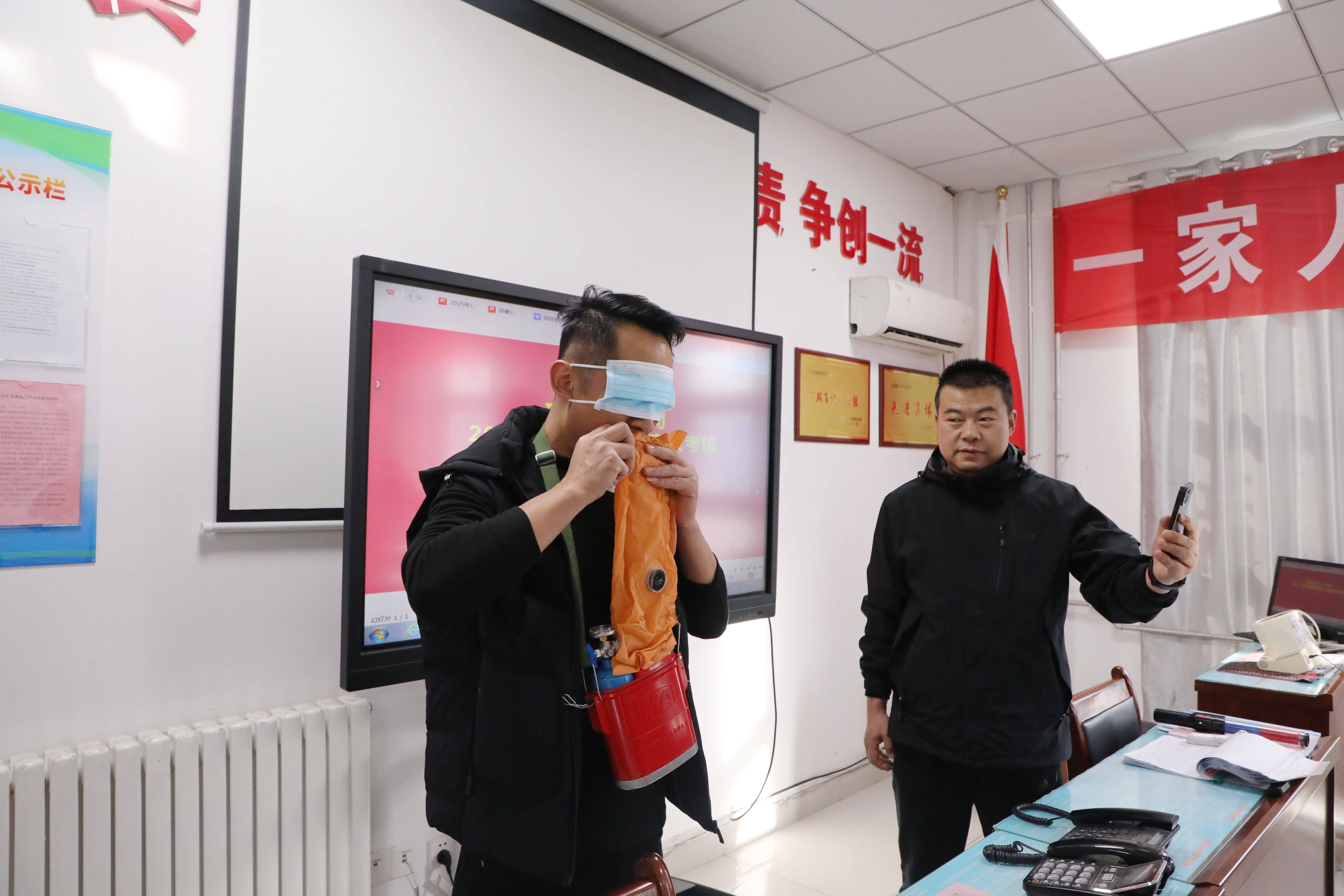 “合格,下一个!”12月25日,该公司综采工区学习室内,一场自救器“三十秒盲戴”活动正在进行,职工们熟练完成开盖、取罐、咬口具等一系列动作,整套流程干脆利落。为确保职工熟练掌握自救器正确佩戴及相关安全知识,进一步提升职工应急自救互救能力,该公司常态化开展此项活动。12月以来,该公司各区队已累计开展抽查20余次,职工合格率达100%。
