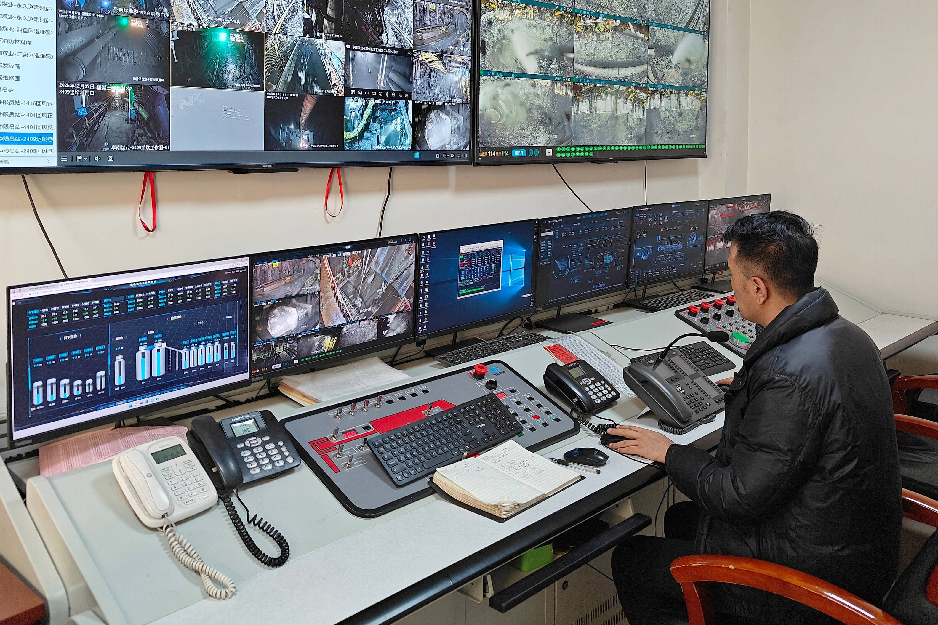 图为亭南煤业工作人员远程监测井下设备运行情况