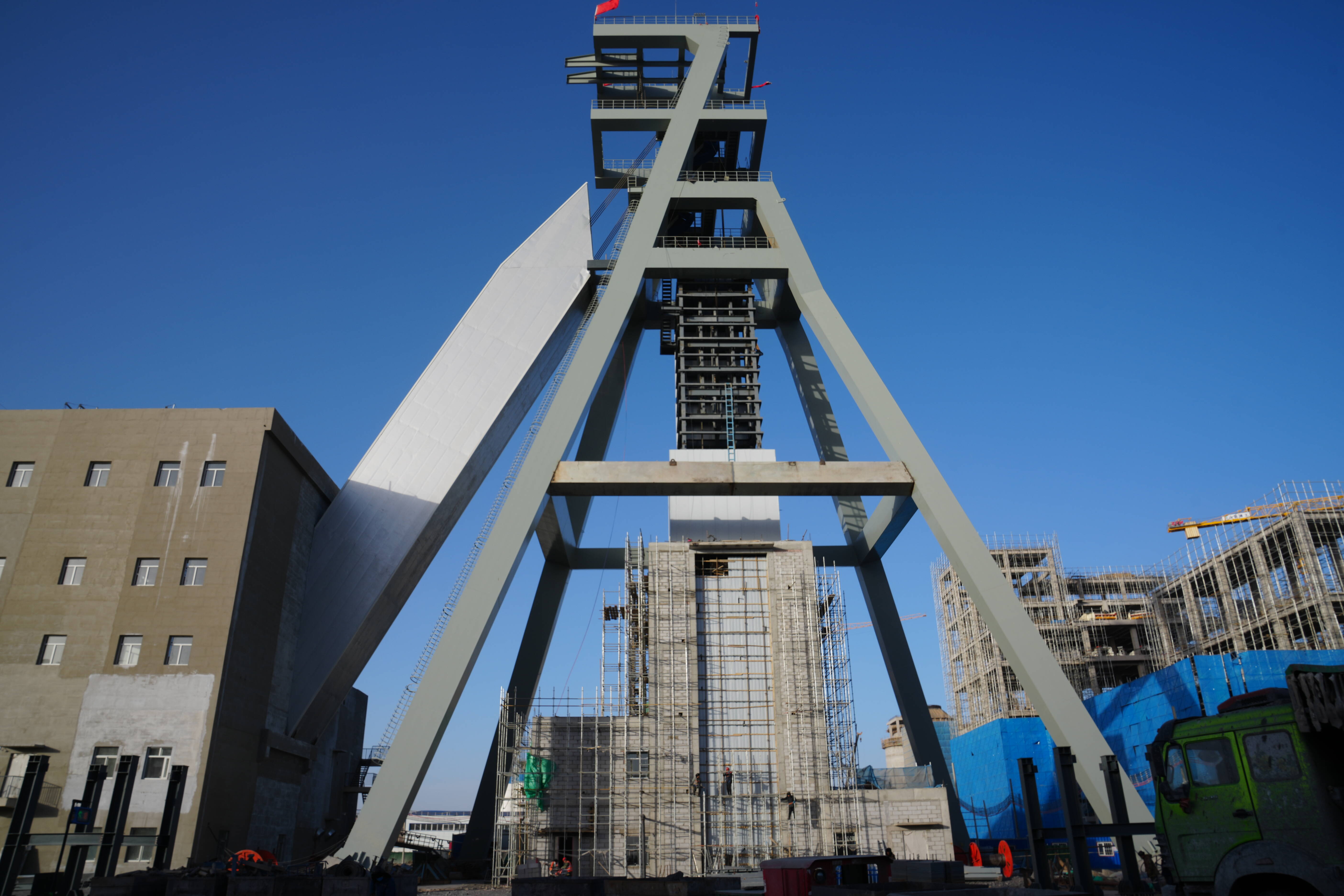 在该矿地面主立井井筒装备施工现场,气温虽然已零下十几度,但现场施工人员工作热情一丝不减,机械设备运转的轰鸣声此起彼伏,大型吊车往来穿梭调运各种设备,一片热闹繁忙的景象。
