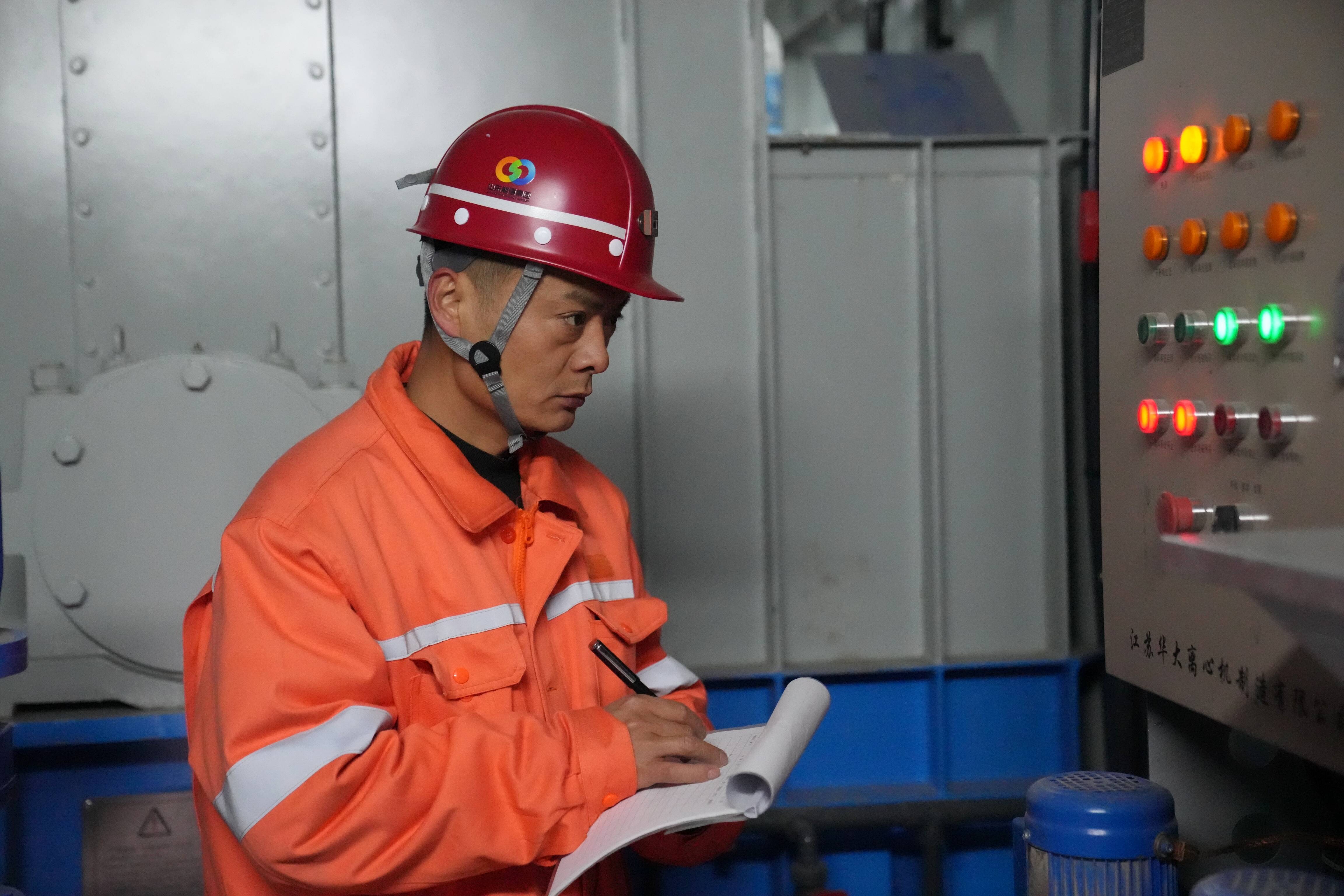 图为油房壕煤矿安监员对水处理设备设施运行情况进行检查