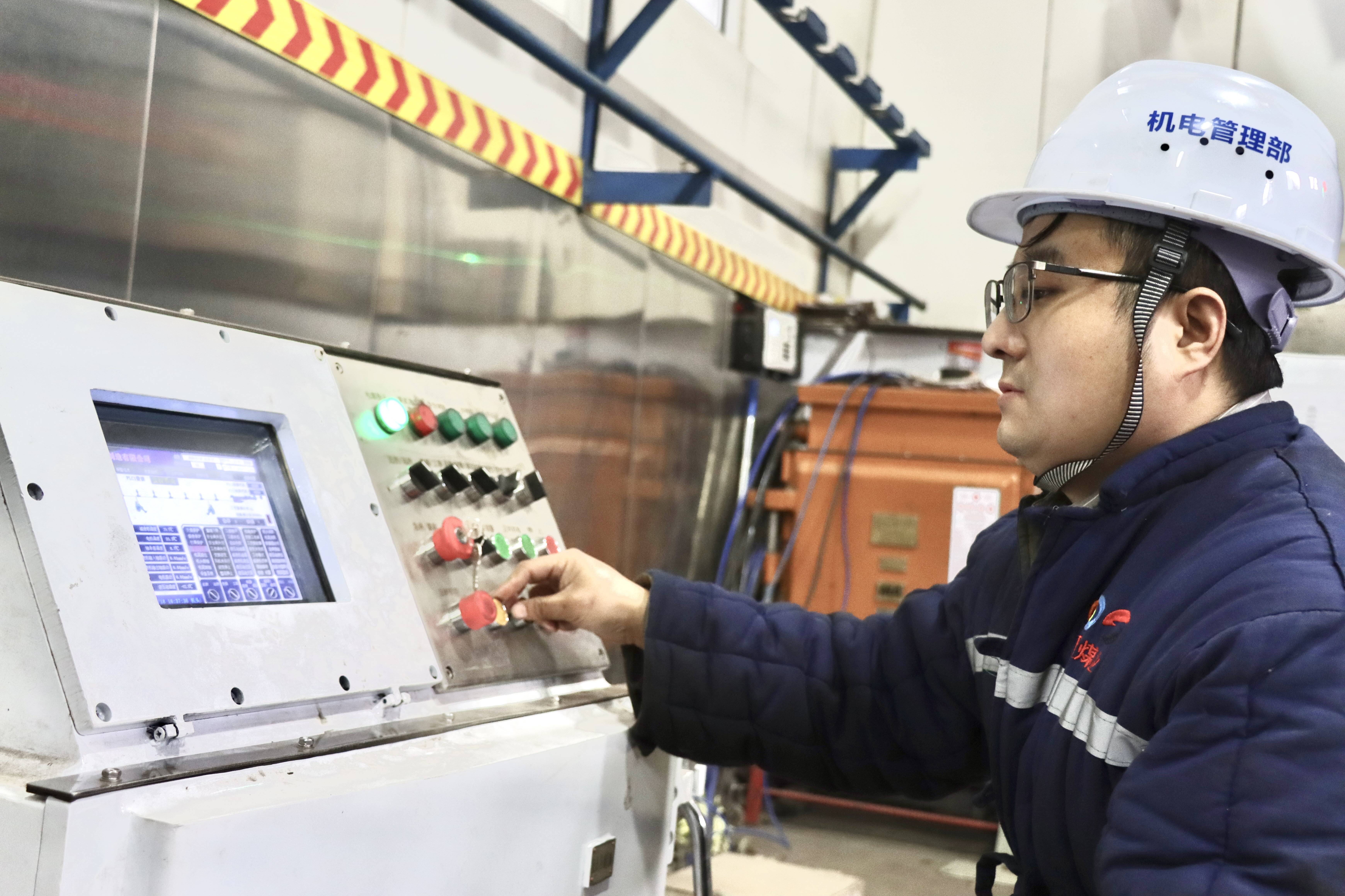 图为望田煤业工作人员调试各种保护运行参数