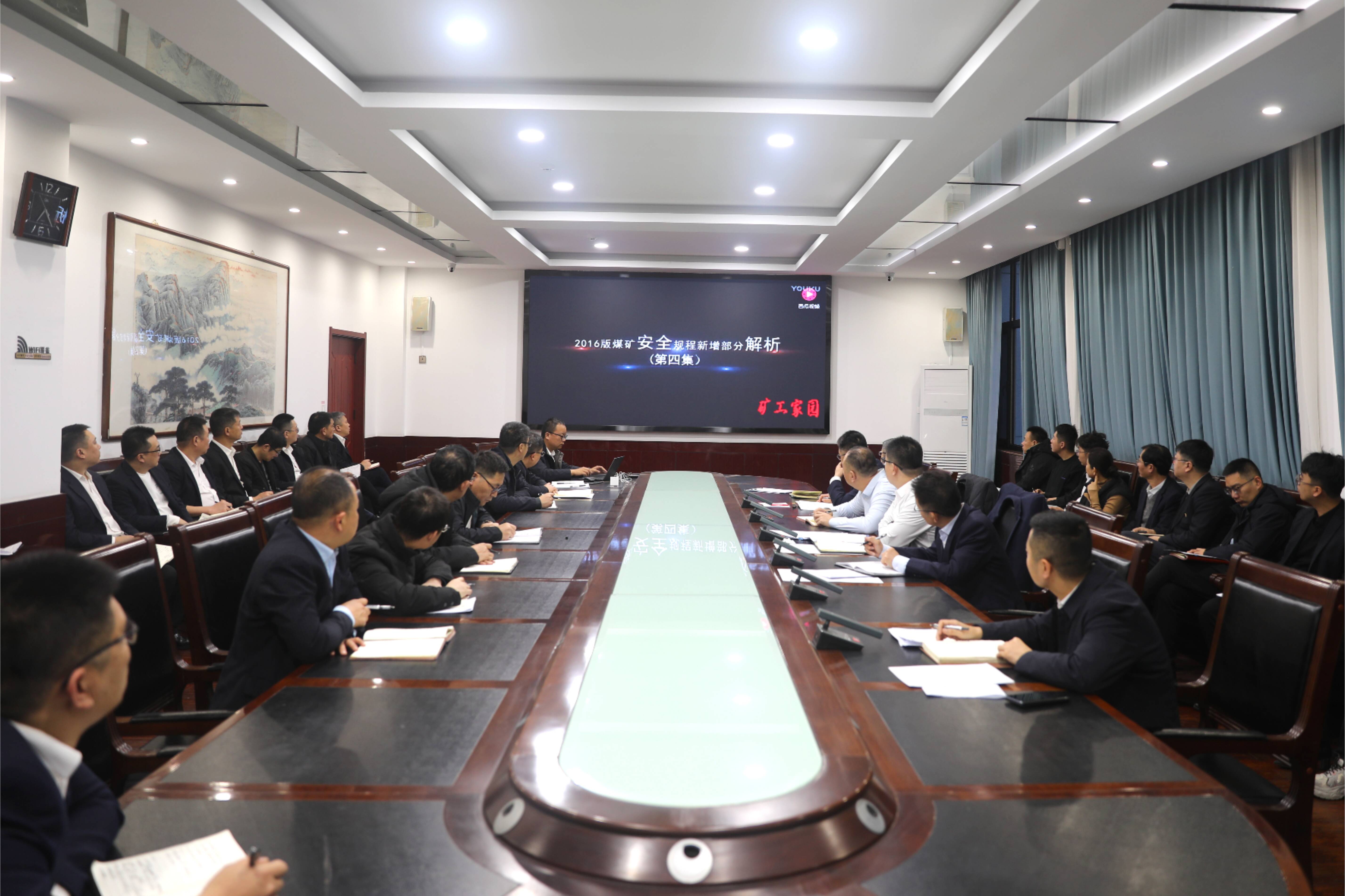 图为大恒煤业早调度会观看警示教育片