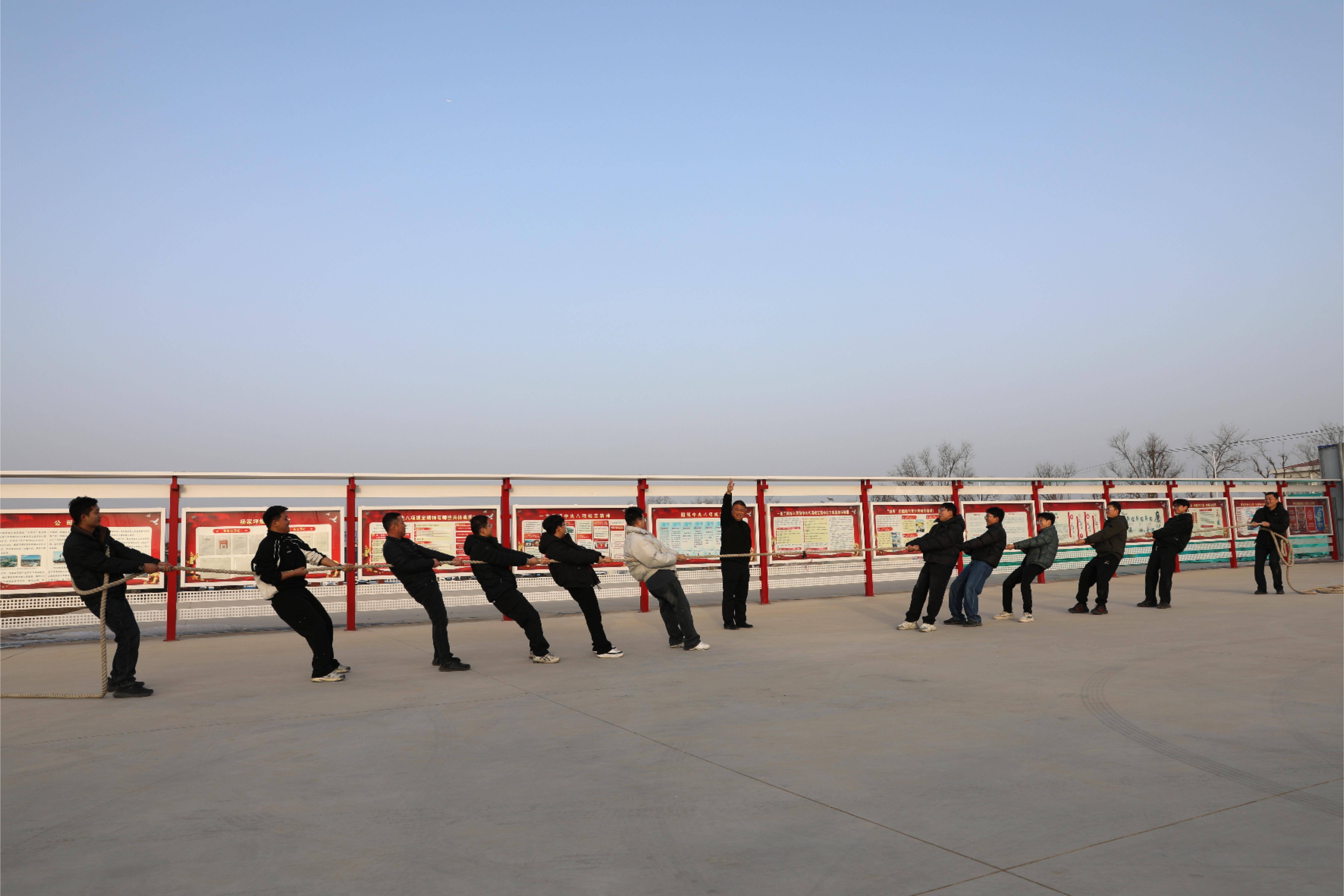 春节将至,杨家坪煤业主井工业广场上热闹非凡。一场拔河比赛激战正酣,双方队员紧握长绳、铆足力气,呐喊声与欢笑声交织回荡,为矿区增添了节日的活力与浓浓暖意。