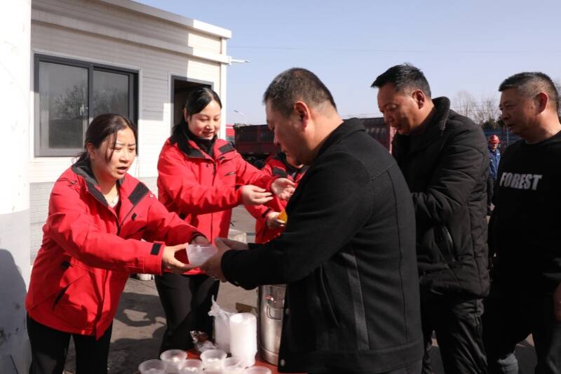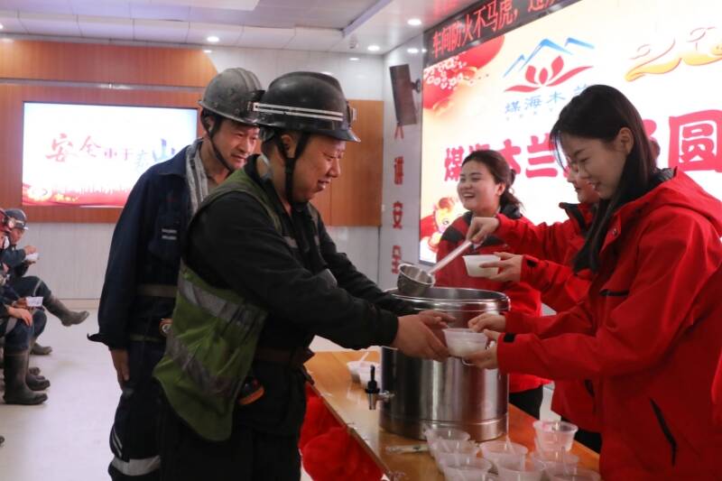 当天中午,该公司食堂不仅为大家提供免费的汤圆,女工协管员和青年志愿者组成“暖心服务队”走进副井口为职工发汤圆,保温桶里的汤圆冒着热气,驱散了周遭的寒气,阵阵甜香在空气中弥漫开来,格外沁人心脾。“师傅,您辛苦了!快吃一碗热腾腾的汤圆,暖暖胃!”随着一句句亲切又暖心的问候,一碗碗汤圆,被稳稳递到等待下井的职工手中。女工协管员眉眼带笑,语气里满是关切,一遍遍反复叮嘱:“师傅,元宵节快乐,下井一定要注意安全,严格按章操作,平平安安上井!”