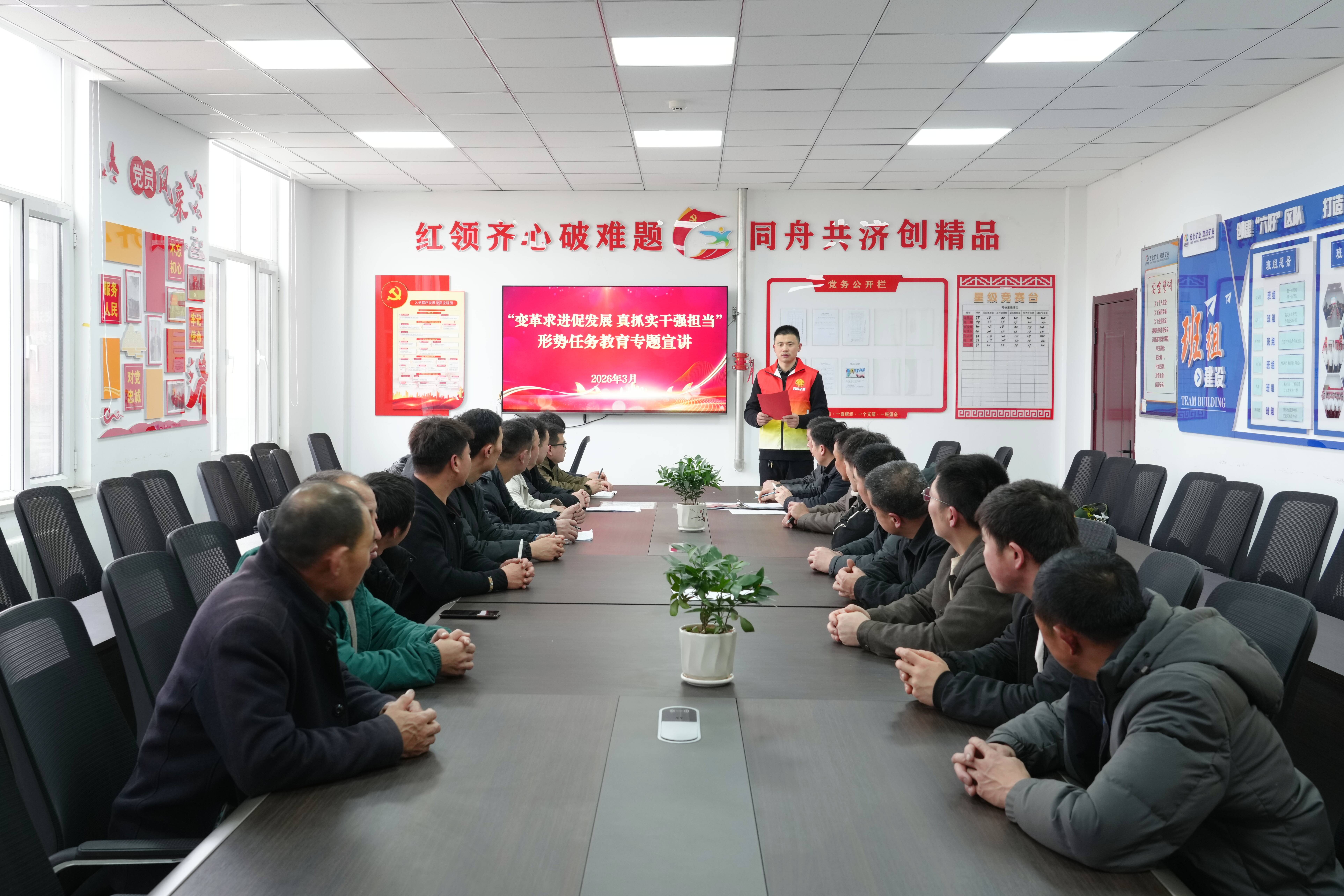 双欣矿业紧扣“变革求进促发展、真抓实干强担当”主题形势任务教育工作部署,深耕思想引领、聚焦宣讲赋能、锚定降本增效,将形势任务教育与生产经营中心工作深度融合,把思想共识转化为干事创业的实际行动,在全公司掀起攻坚克难、提质创效的实干热潮,为企业高质量发展注入强劲思想动力。