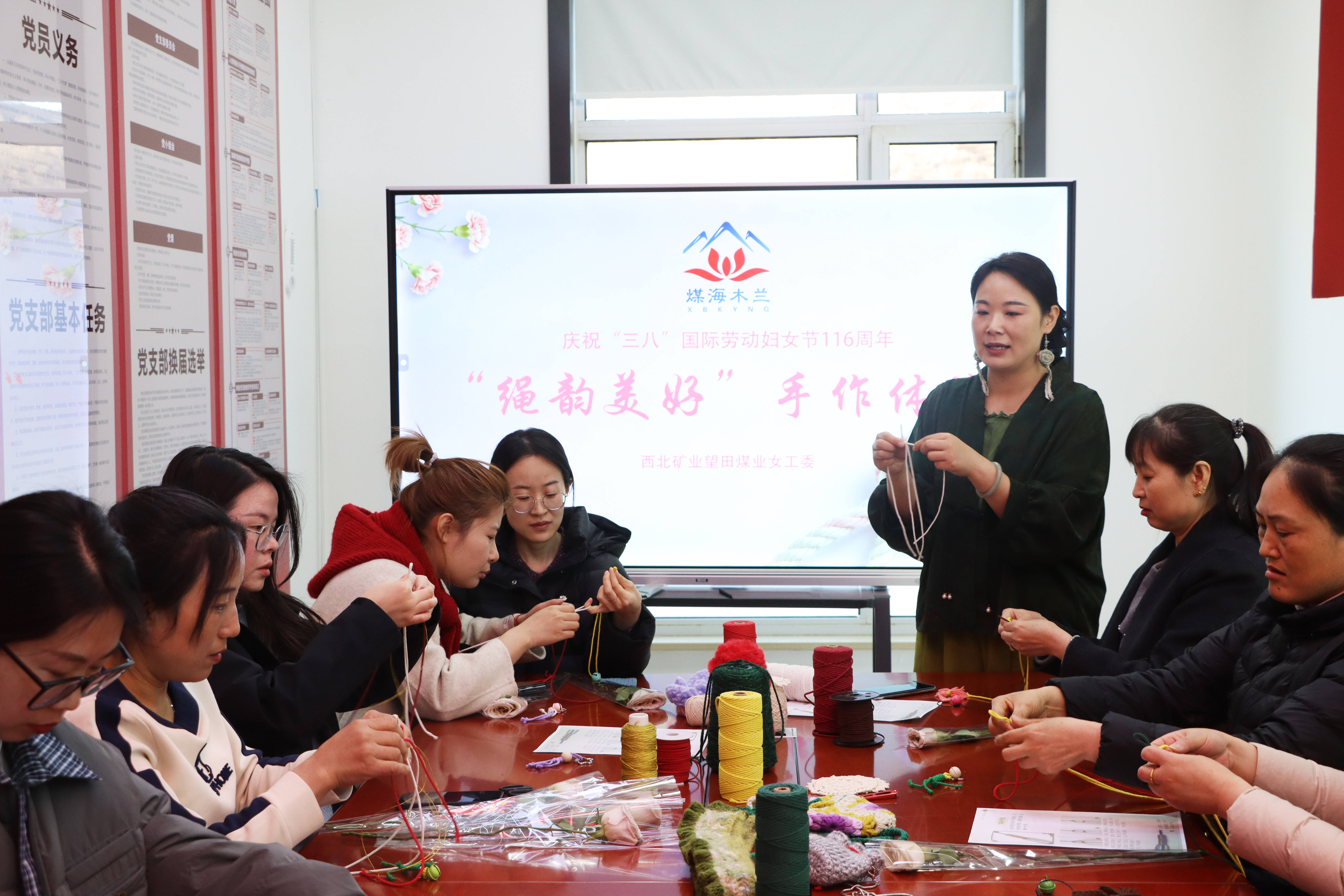 该图为望田煤业女职工在礼仪老师的指导下制作手工
