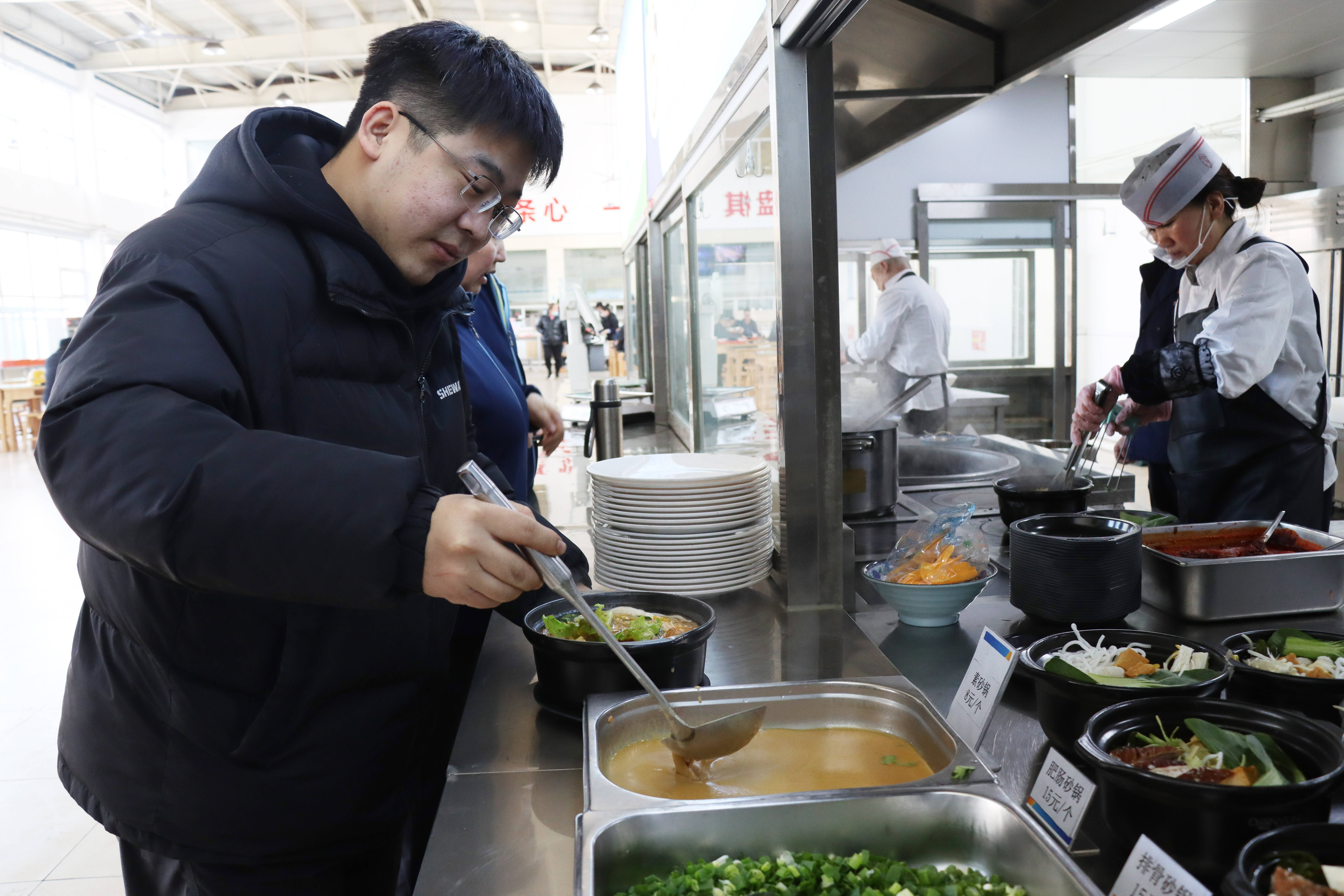该图为望田煤业职工在职工餐厅有序排队自助用餐