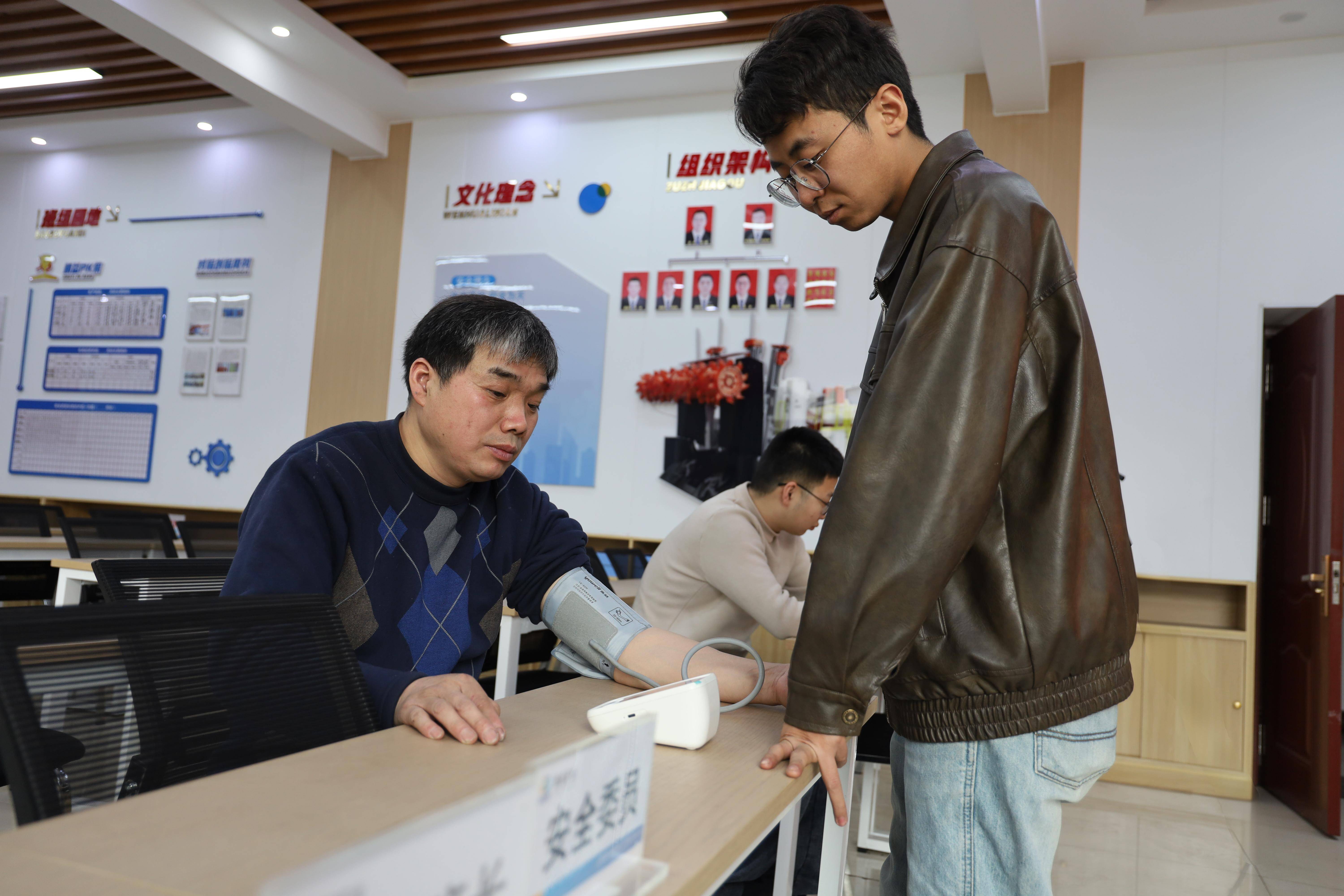 “高压120,低压80,老李,你今天血压控制得不错,可以入井,这几天换季要注意身体,可不能带病下井。”3月17日一大早,在综采工区班前会上,值班副队长刘宗君给准备下井的李厚量血压。