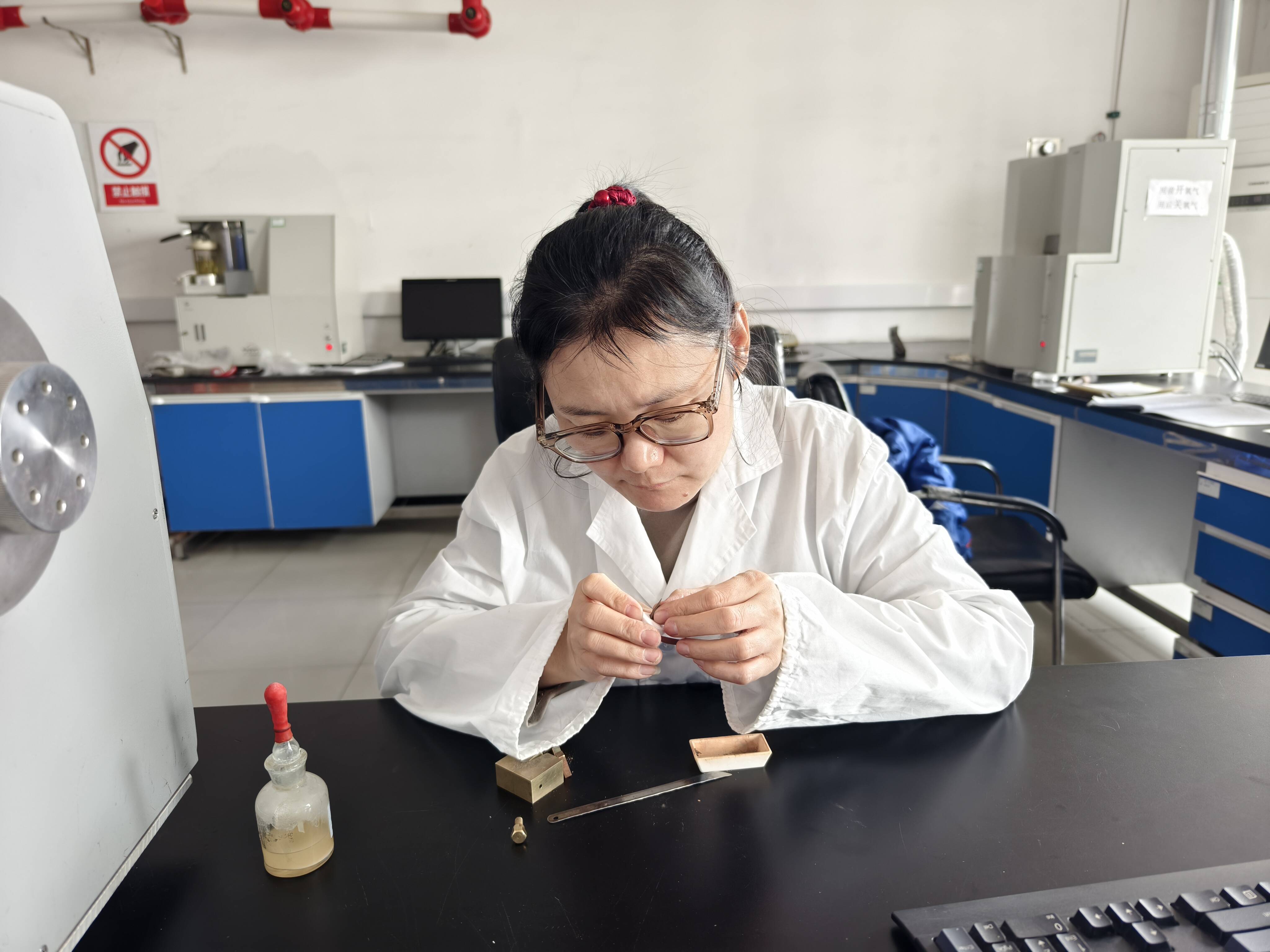 锅炉炉渣、气化炉粗细渣残碳分析,是节能降耗的关键依据。面对又黑又硬、气味刺鼻的渣样,她们毫无怨言,破碎、研磨、过筛,精准测定每一组数据。