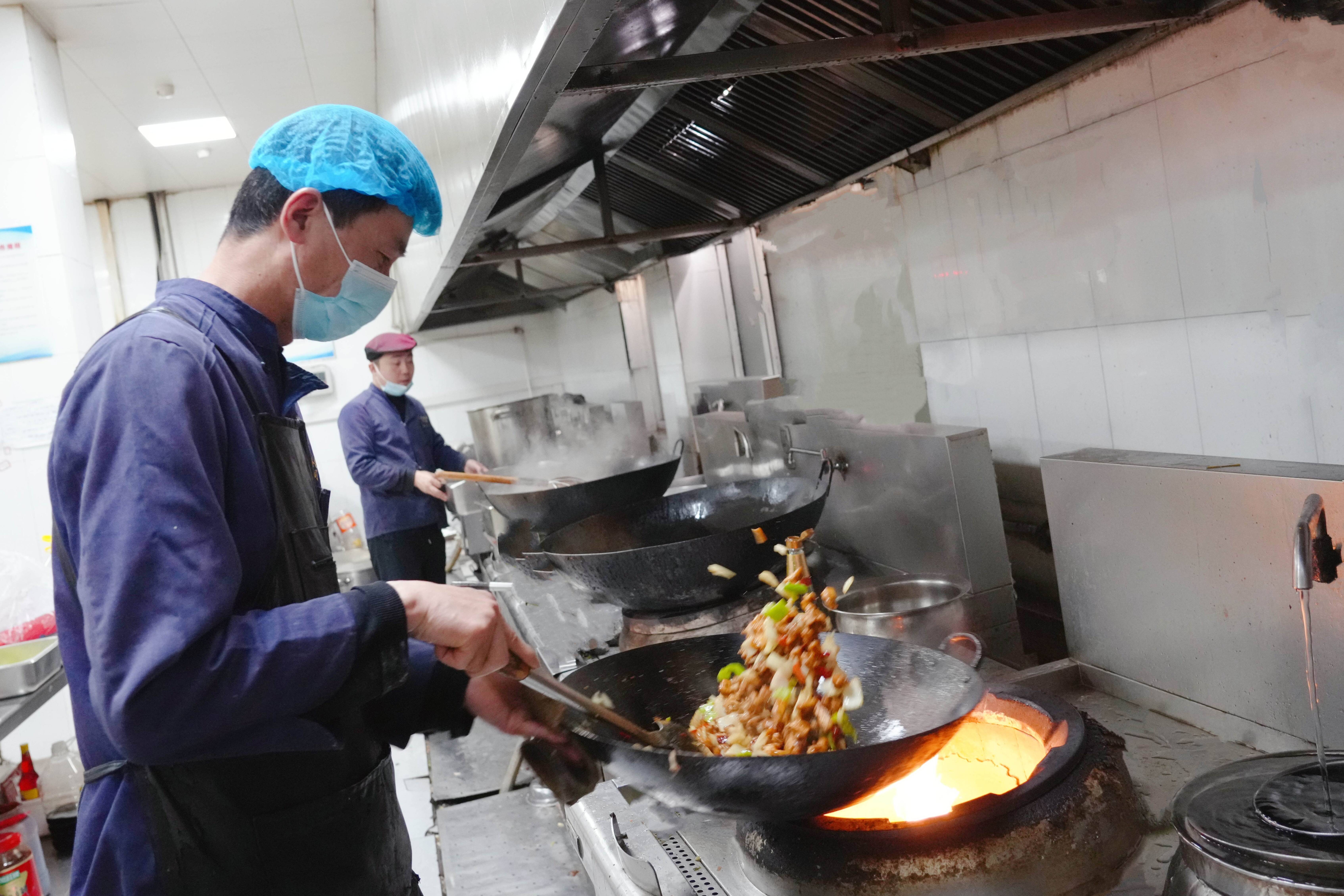 图为双欣矿业餐厅工作人员烹饪小炒