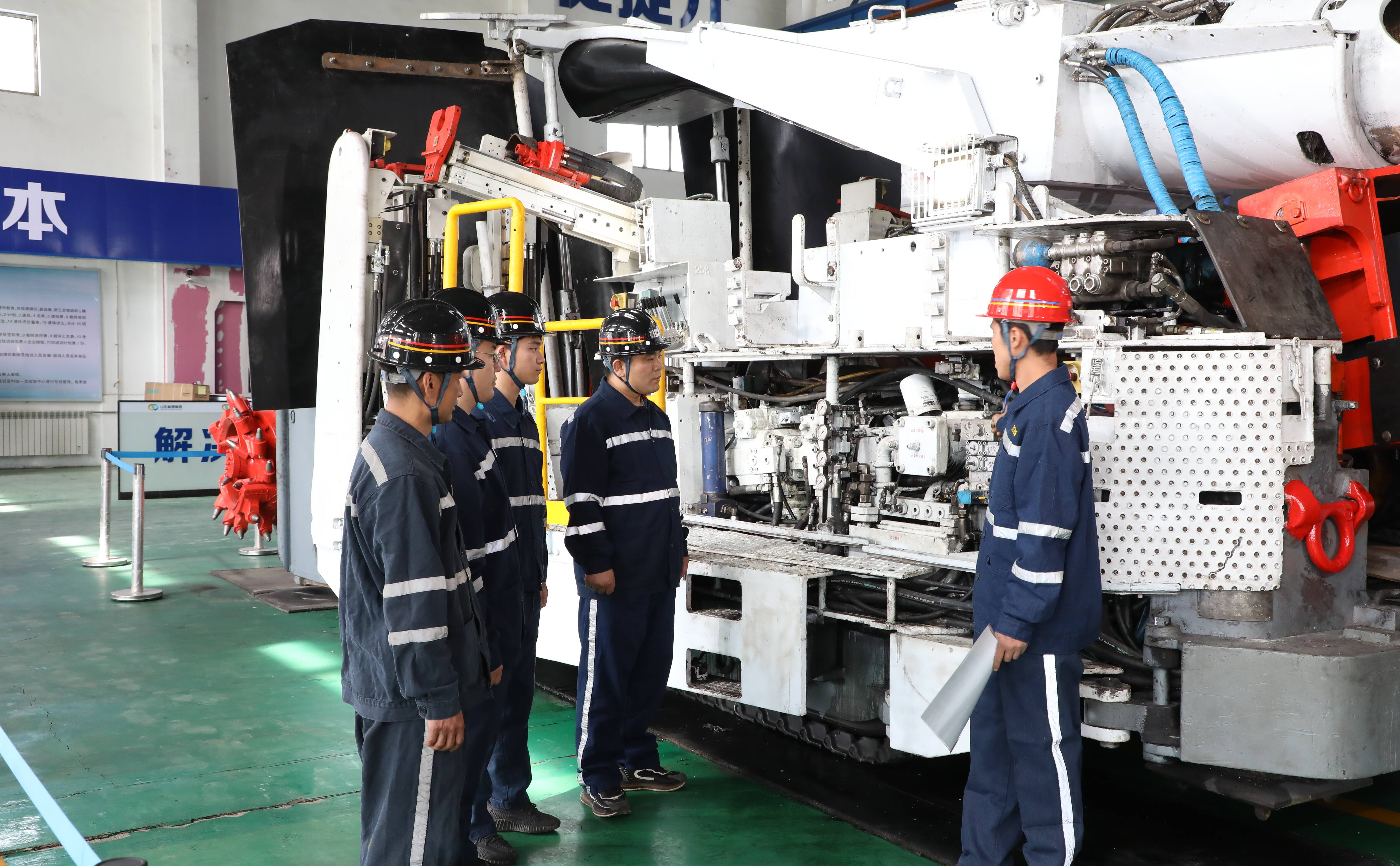 图为双欣矿业梁壮带领职工自主大修掘锚一体机