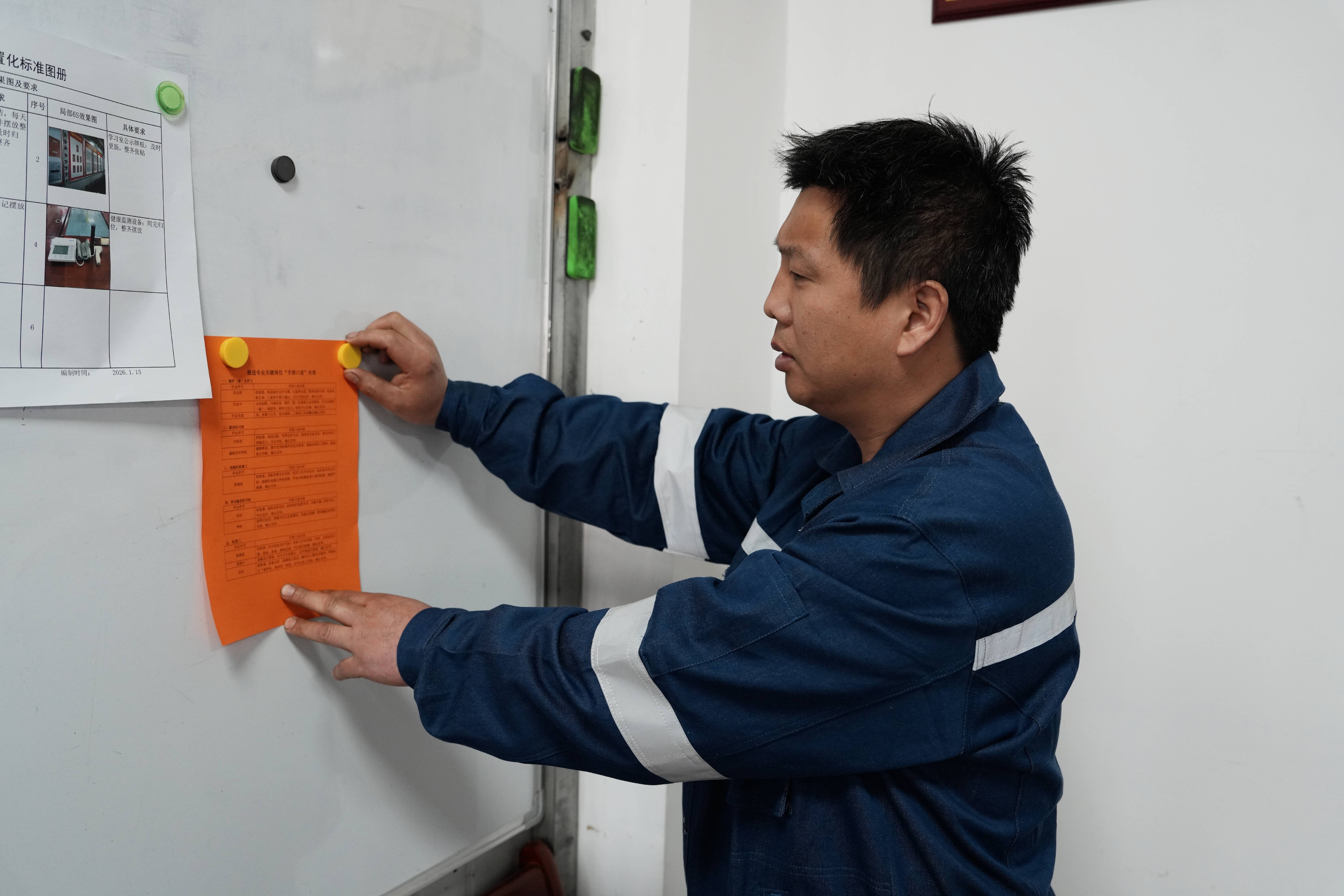 图为金元光学习掘进专业关键岗位“手指口述”