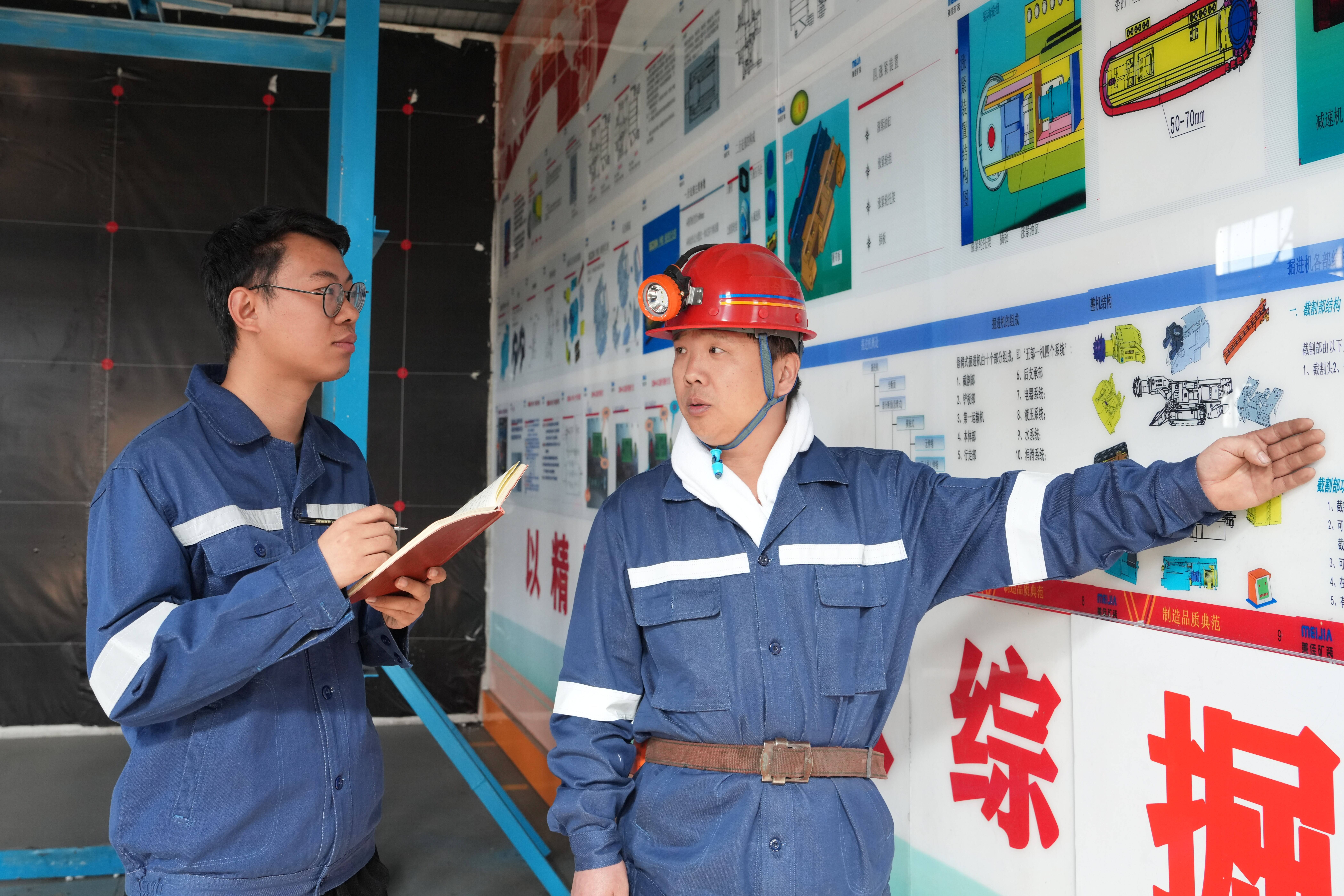 图为金元光为徒弟细致讲解综掘机理论知识