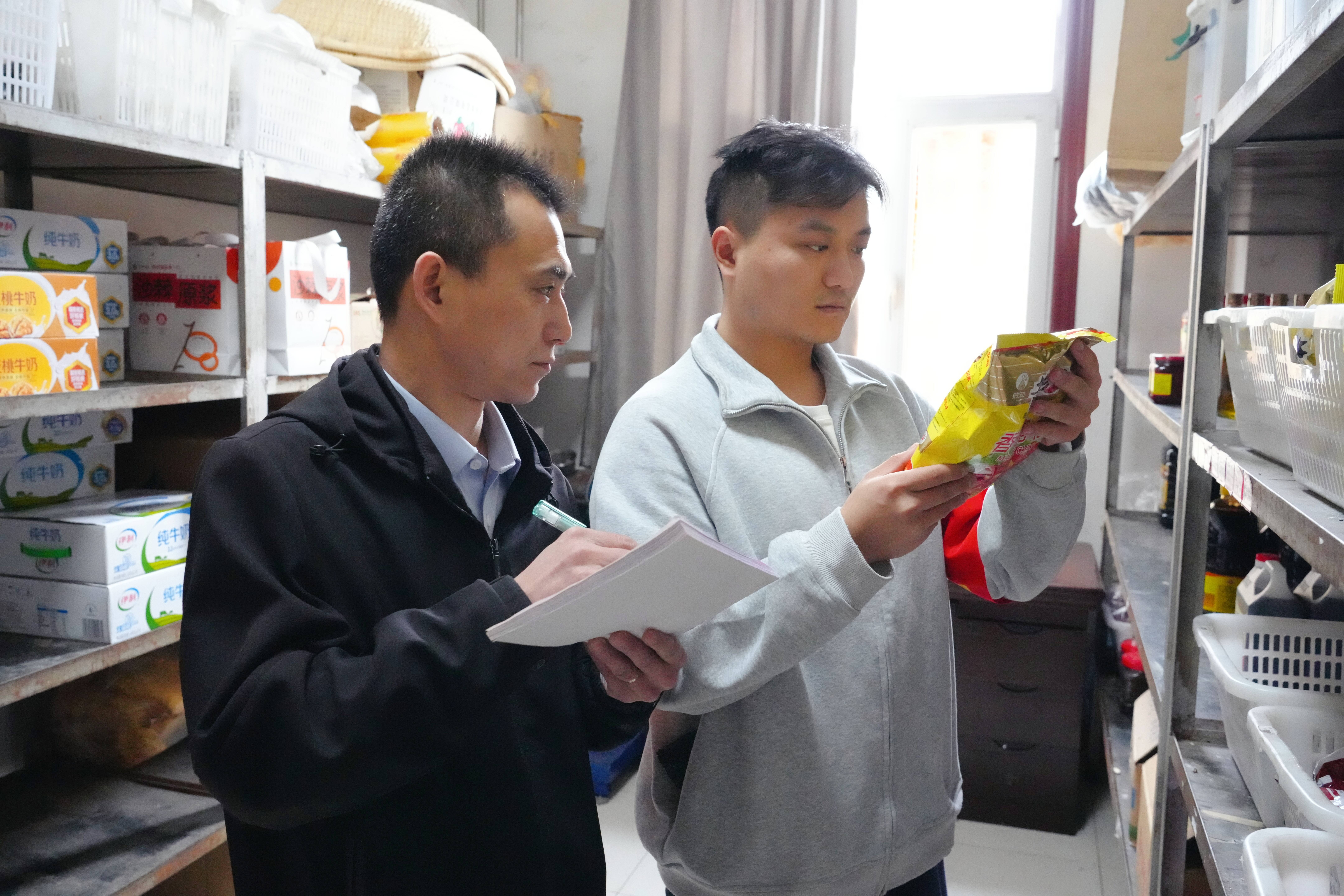 图为双欣矿业职工巡视代表检查食堂货物