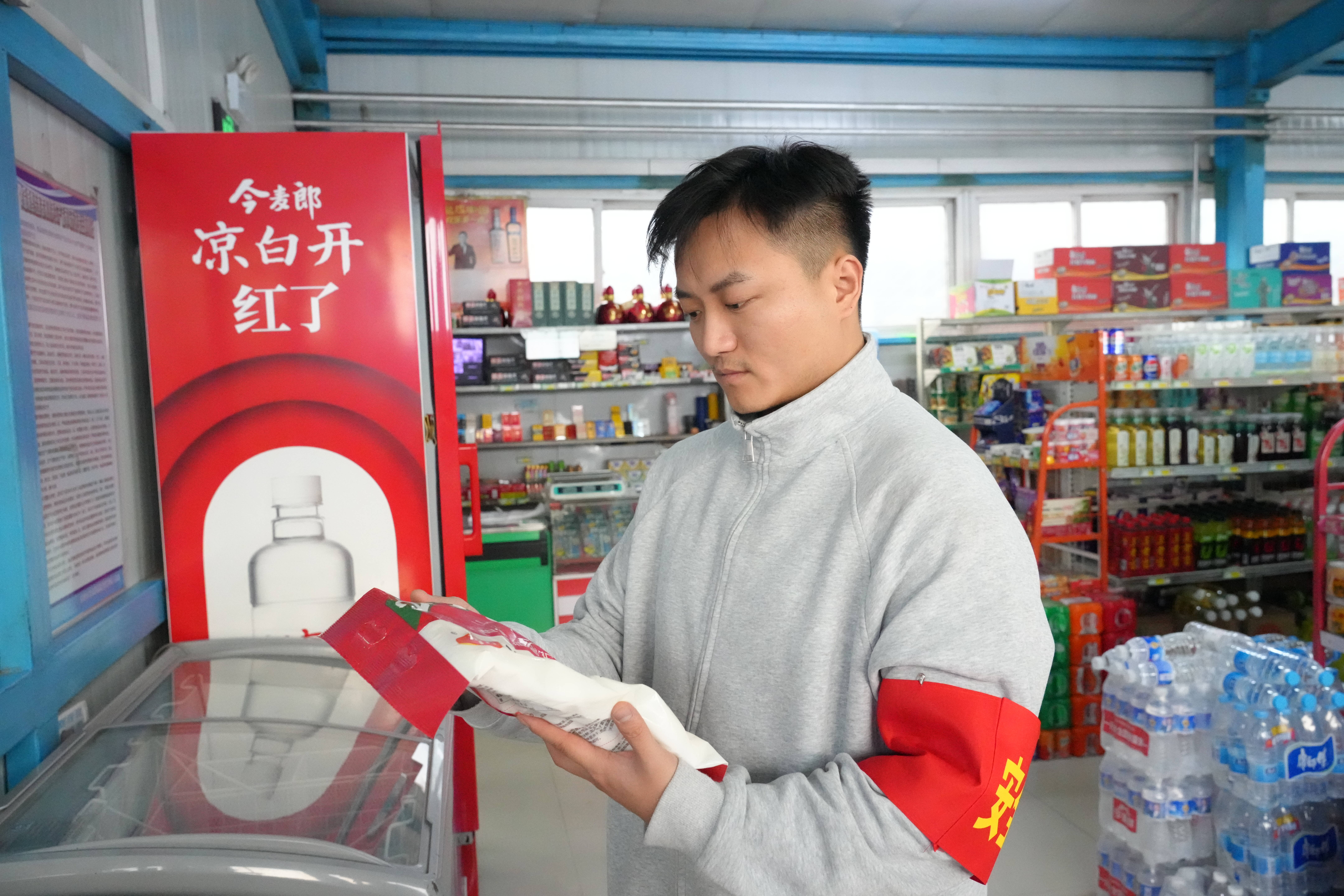 图为双欣矿业职工巡视代表检查便民超市现场