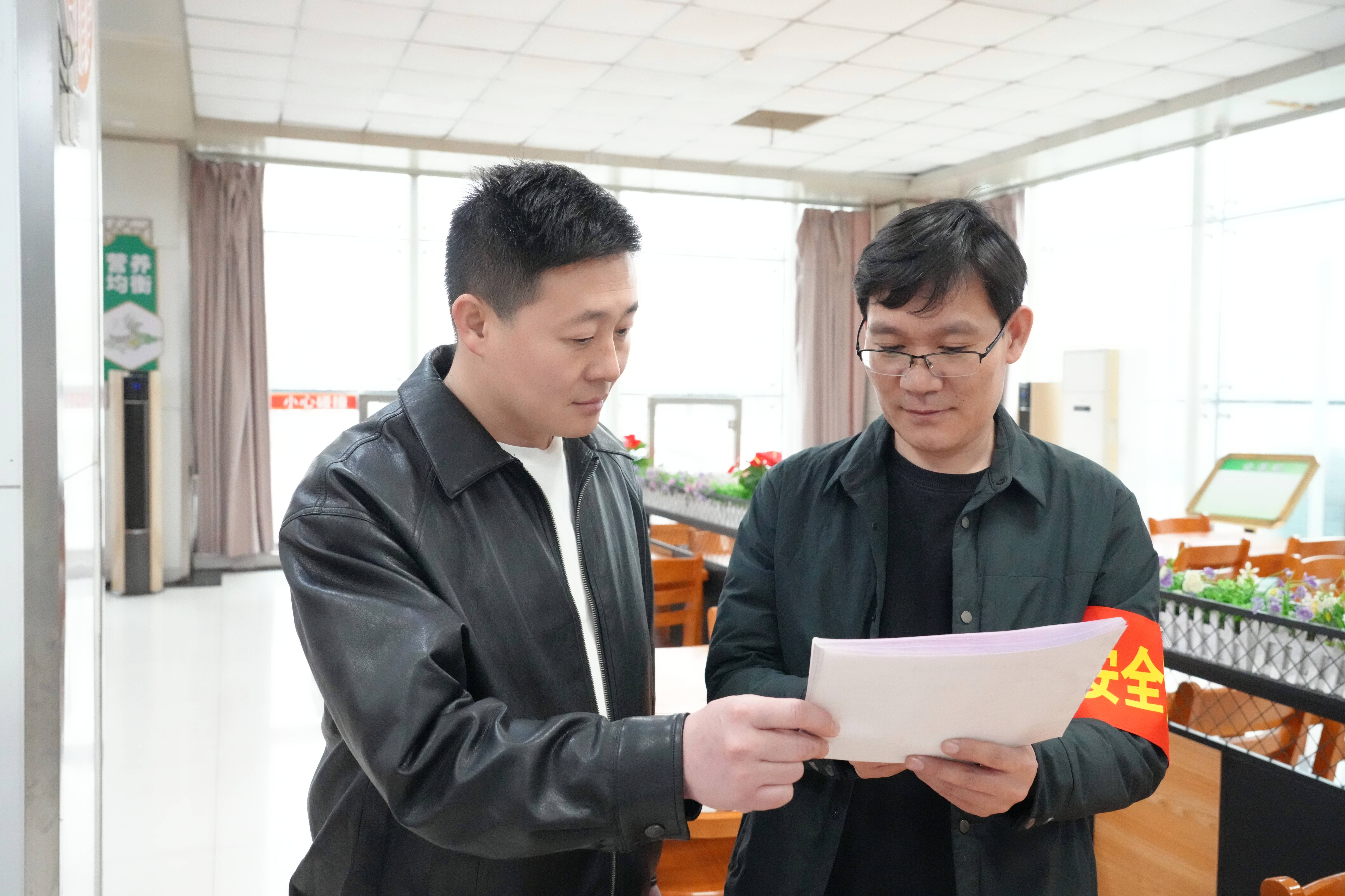 3月27日清晨,双欣矿业职工食堂内,几名佩戴红色臂章的工作人员正一边仔细查看仓库物资,一边在笔记本上翔实记录。这是该公司开展民生与安全专项巡视的日常一幕,也是企业畅通民意渠道、用心服务职工的鲜活注脚。