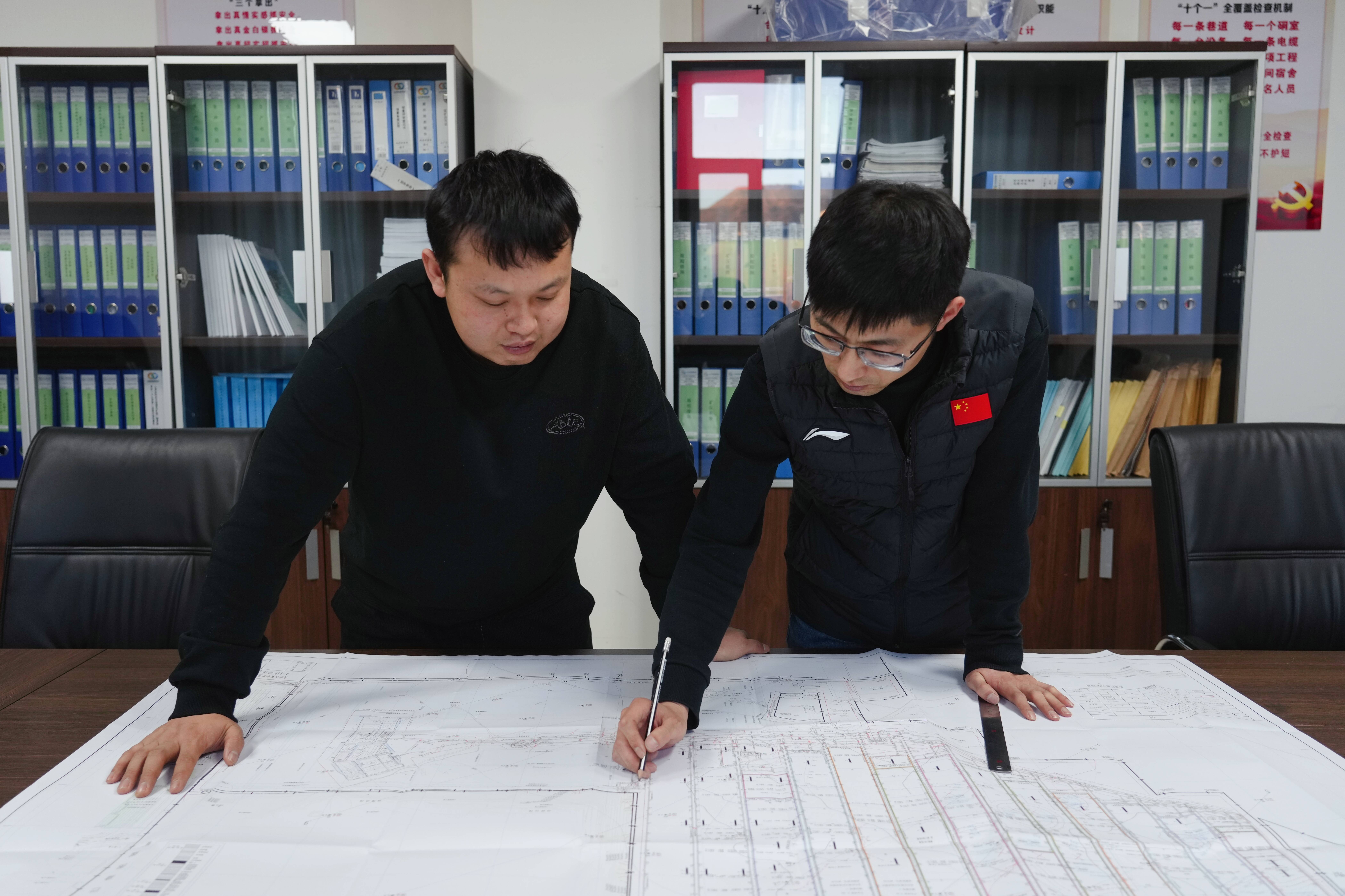 图为双欣矿业生产技术人员核对生产方案