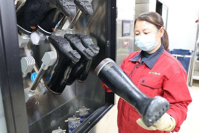 不仅是工装,胶鞋也有了“专属服务”。过去,胶鞋刷洗后晾晒时间长、干不透,职工穿在脚上又湿又冷。投用胶鞋洗靴机和烘干机后,大幅缩短晾晒时间,解决职工刷鞋难、晾鞋慢的难题,让大家从“脚底”暖到“心头”。