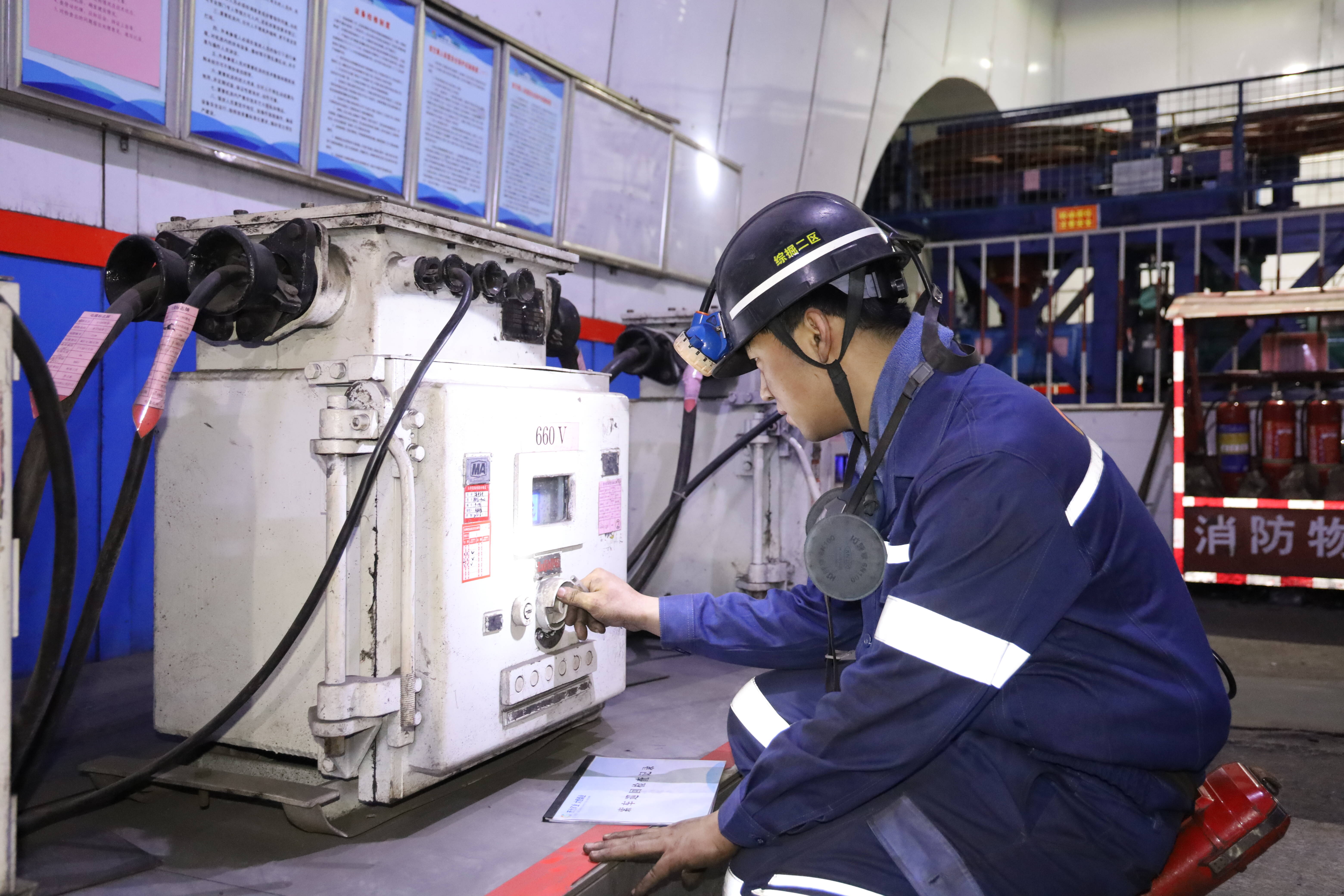 图为大恒煤业技术员对设备进行检查