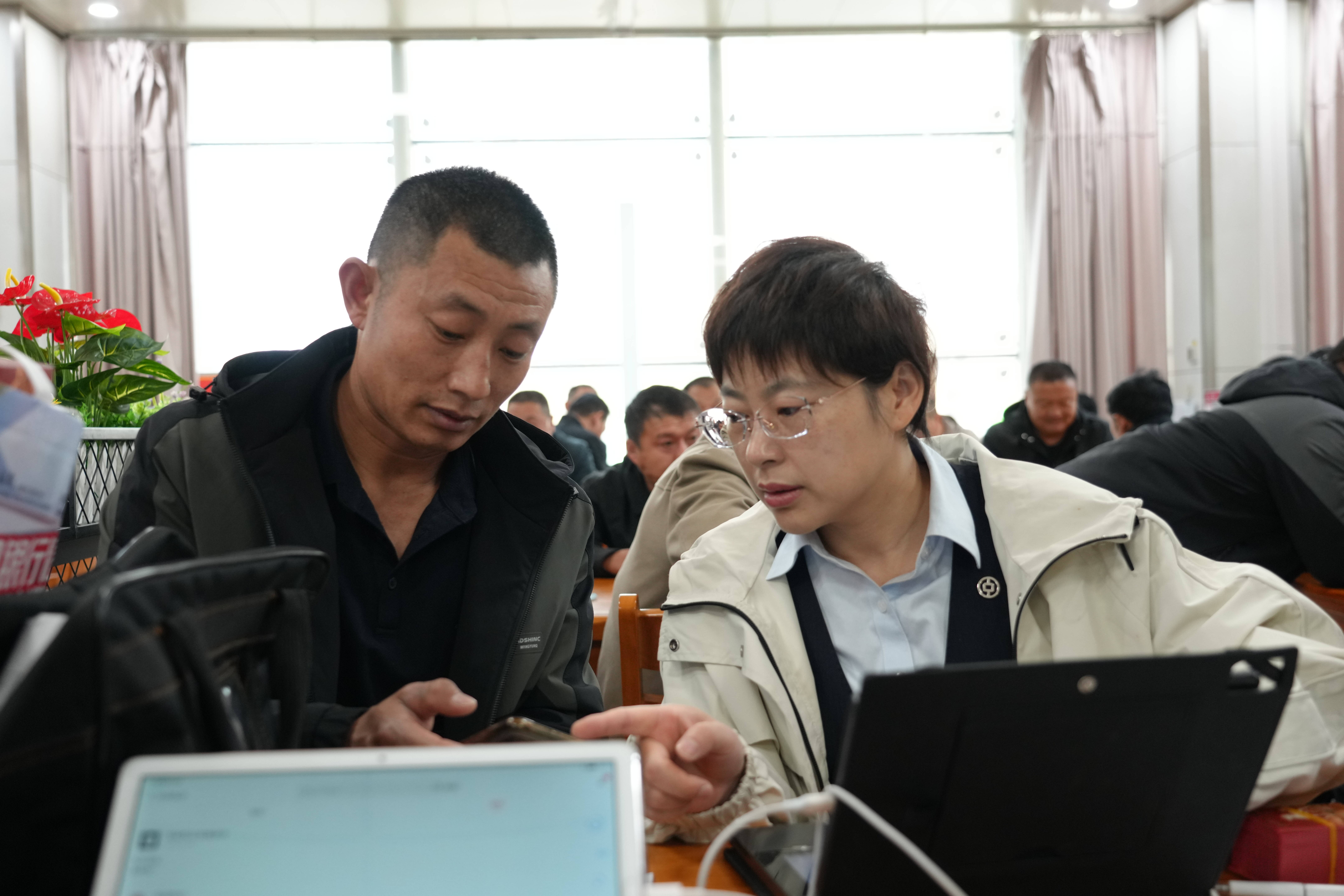 图为双欣矿业邀请银行业务人员为新职工办理饭卡