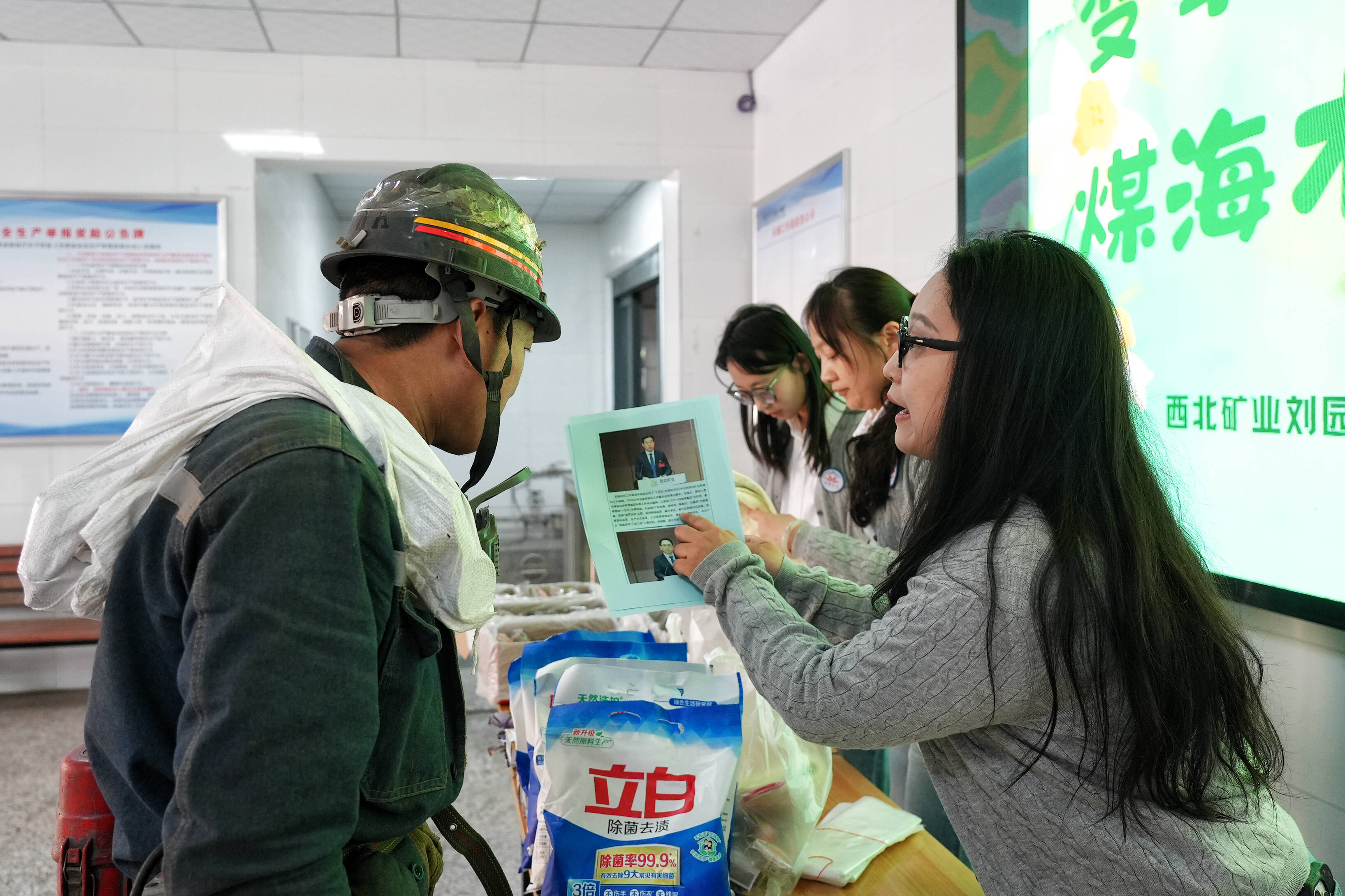 从“声边”到“身边”,播撒安全种子;从“讲台”到“现场”,筑牢思想防线。该矿坚持“安全宣教+形势宣讲”双向赋能,将互动问答、案例剖析等鲜活形式贯穿宣讲全过程,变“单向灌输”为“双向互动”,在潜移默化中强化安全意识、深化政策理解。在井口送温暖活动中,女工协管员不仅组织安全知识有奖竞答,还亲手为上下井的工友送上毛巾、洗衣粉、肥皂等实用物品。